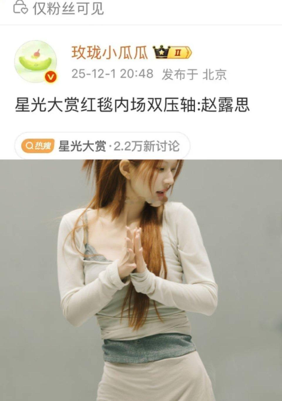 赵露思:星光大赏红毯和内场双压轴。