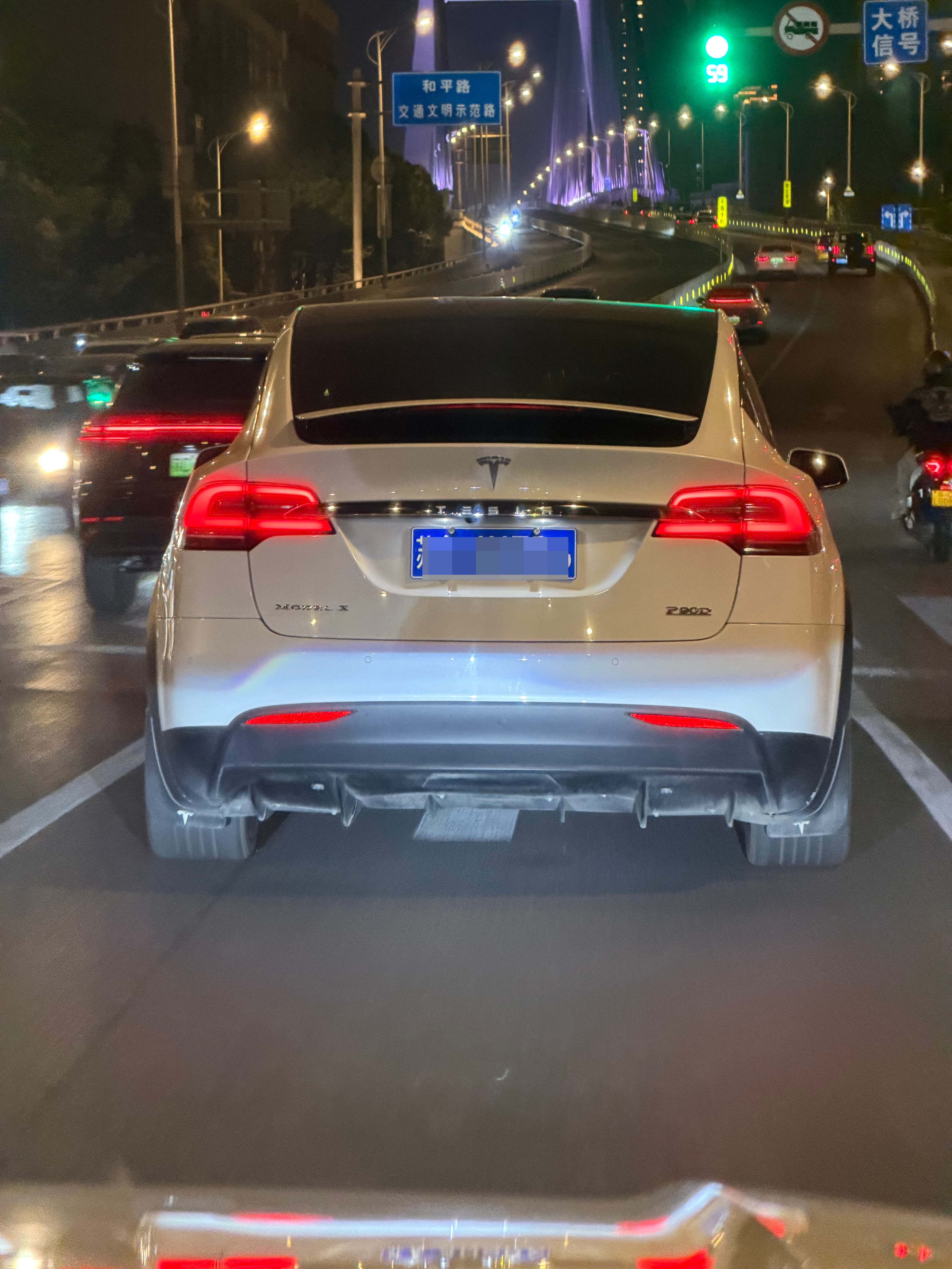 路遇一辆蓝牌特斯拉Model X,这才是真大佬