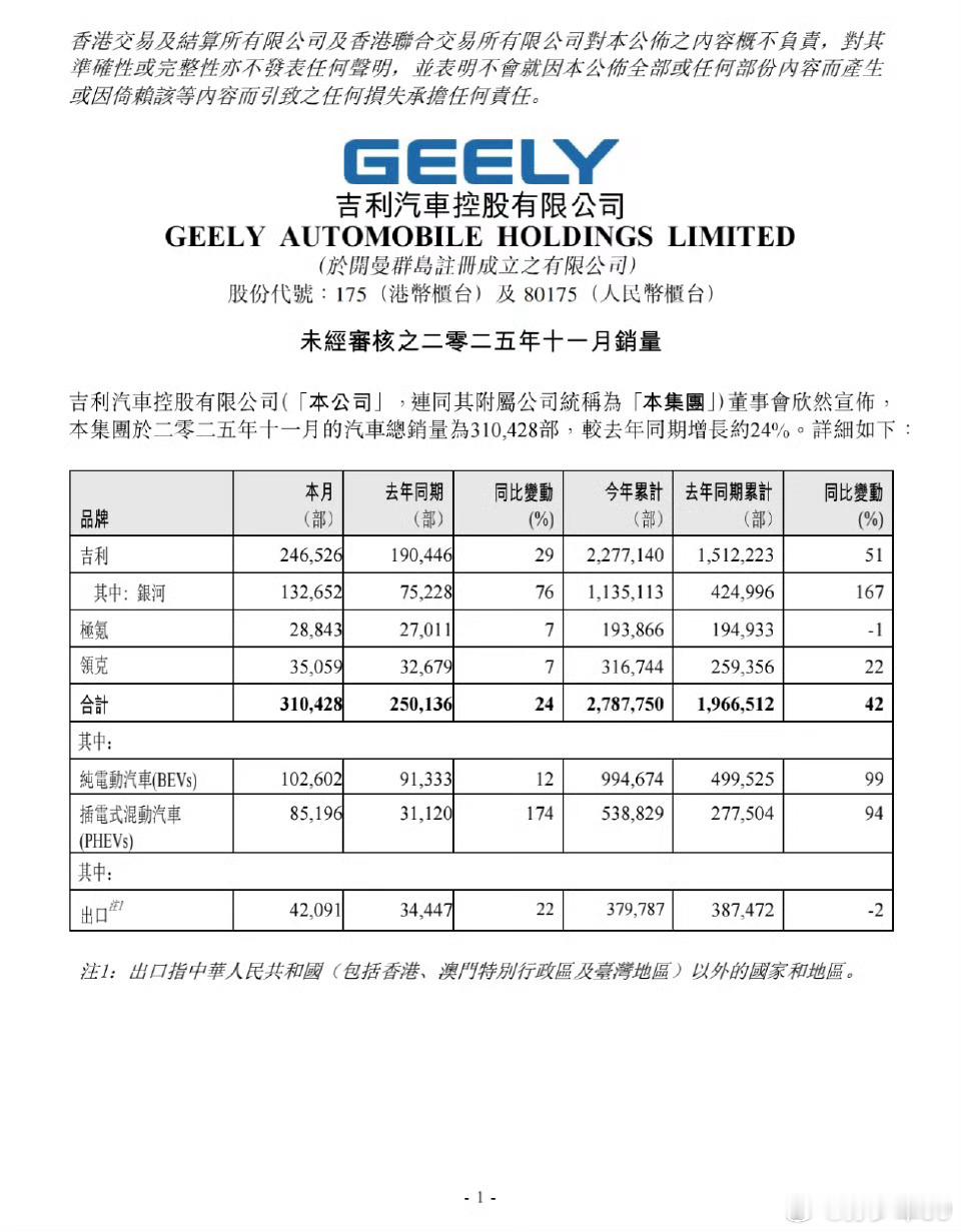 吉利11月新车销量310428辆,其中吉利银河132652辆只能说今年的银河就是最大的黑马