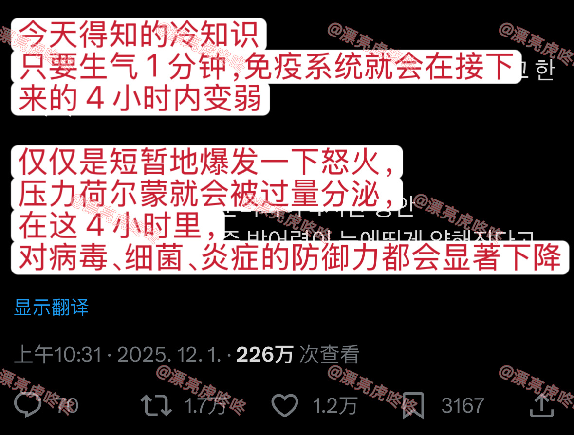 【twi】“只要生气1分钟,免疫系统就会在接下来的4小时内变弱”
