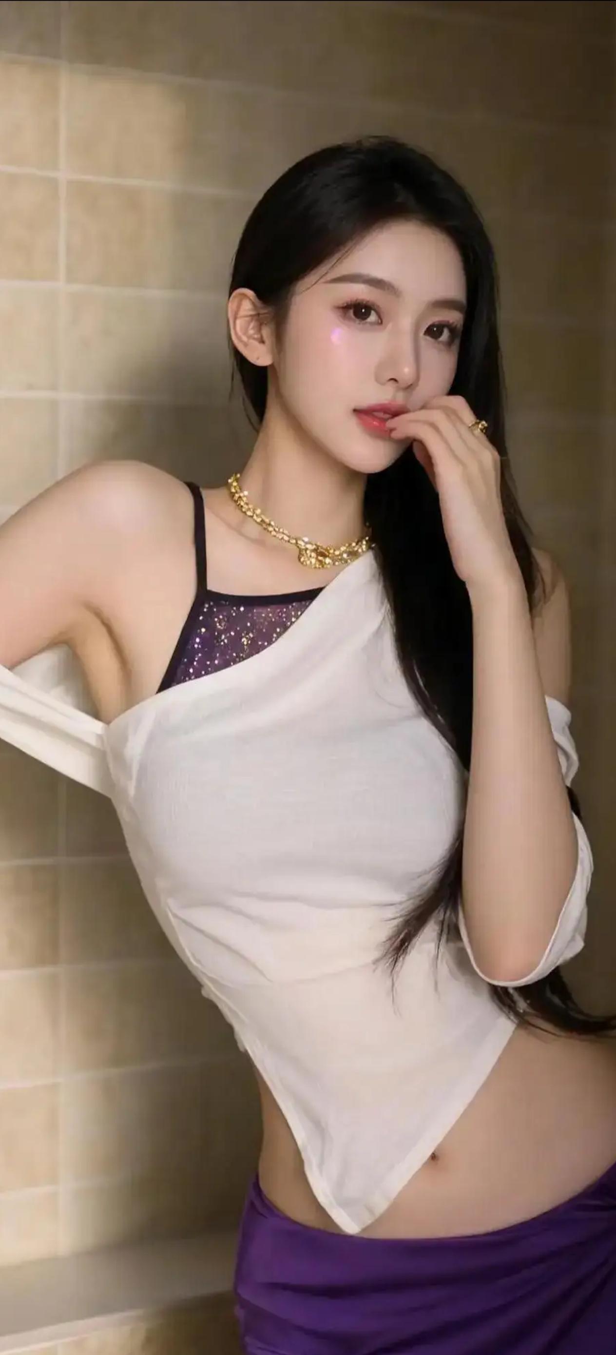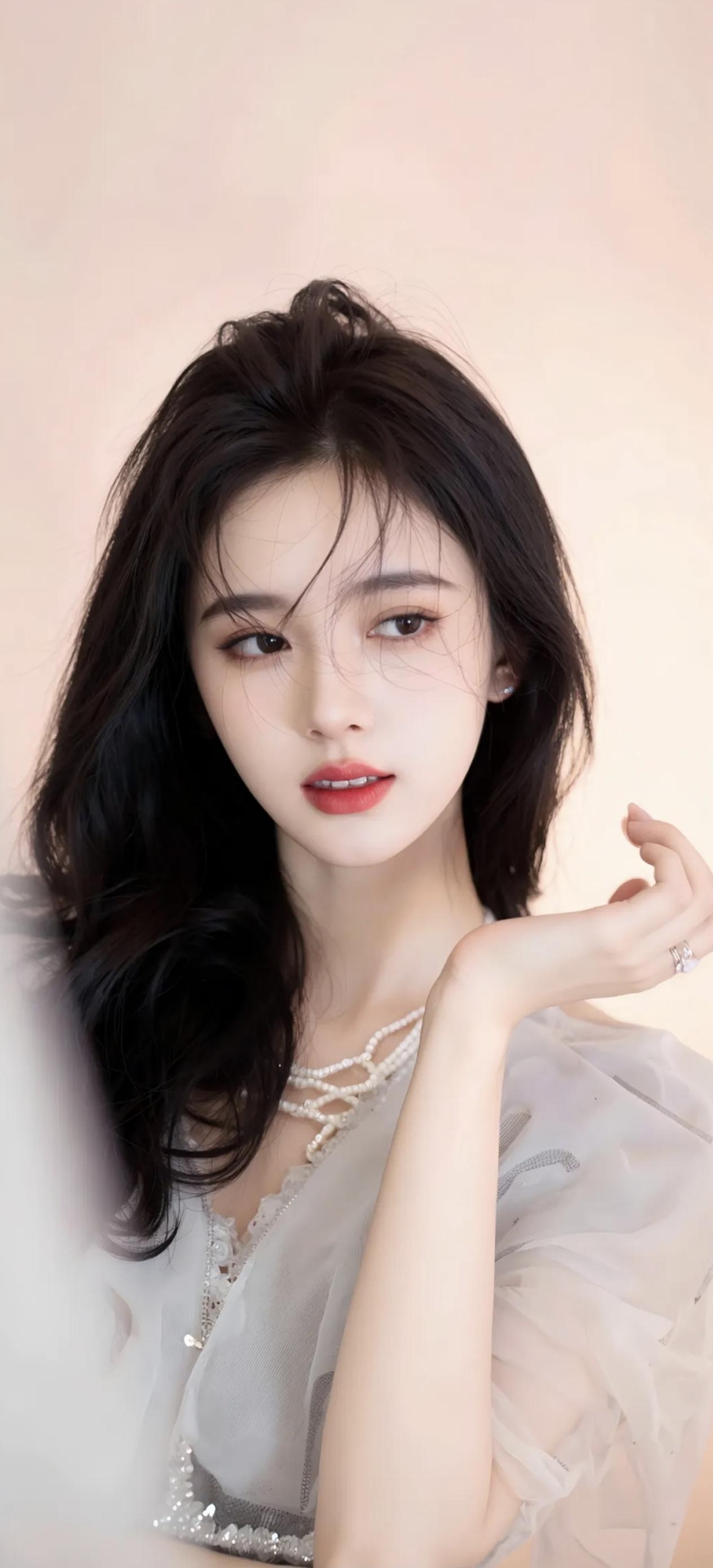 素面含情映日红,轻盈体态自玲珑。 回眸一笑春波绿,举步微摇秀发风。 玉骨冰肌凝雪