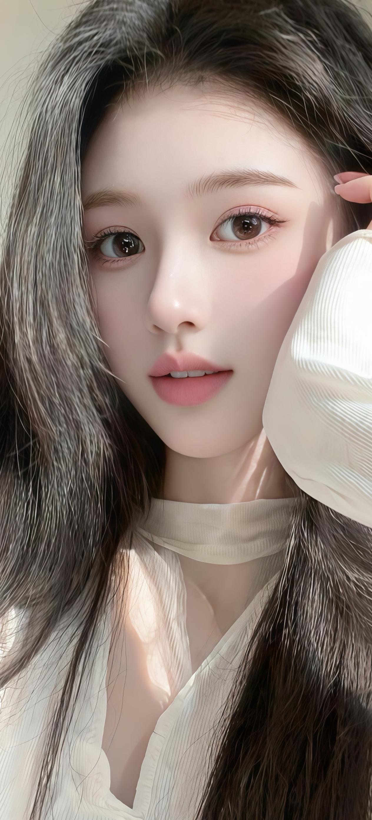 素面含情映日红,轻盈体态自玲珑。 回眸一笑春波绿,举步微摇秀发风。 玉骨冰肌凝雪魄,兰心蕙质蕴芳丛。 世间绝色何须觅,此际芳华已不同。