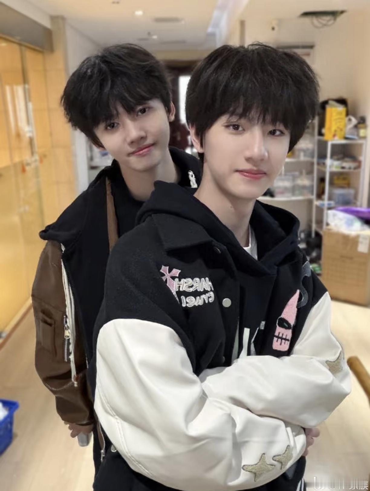 张奕然李煜东合照这张照片 李煜东 也不微对眼了,眼神看起来都像开了智都不呆了!张奕然更是不卖萌了!开始有了年上感!