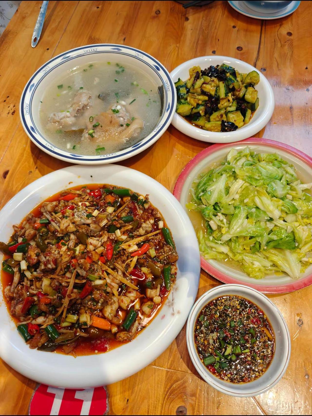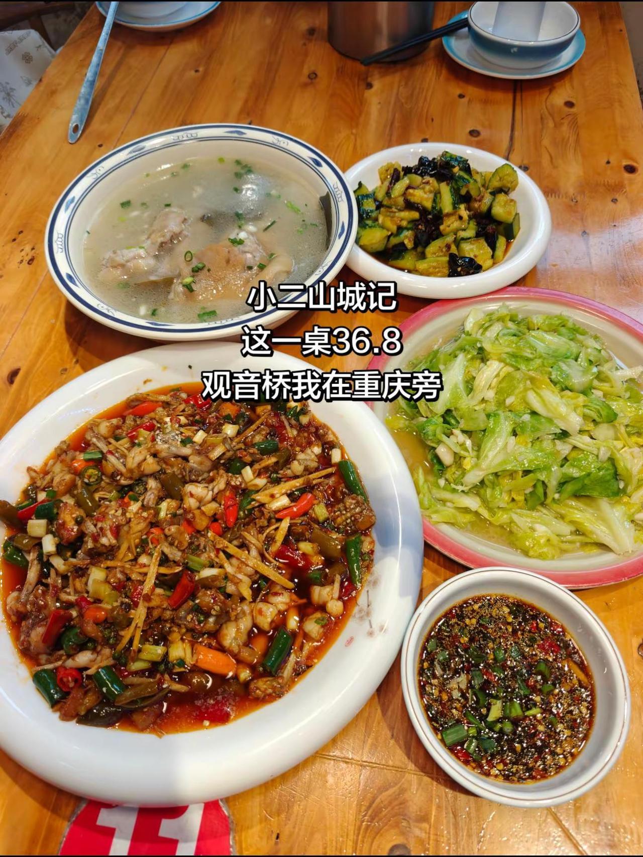 观音桥我在重庆网红点旁,36.8安排一大桌,泡椒牛蛙,蹄花汤都能吃到,分量足,而