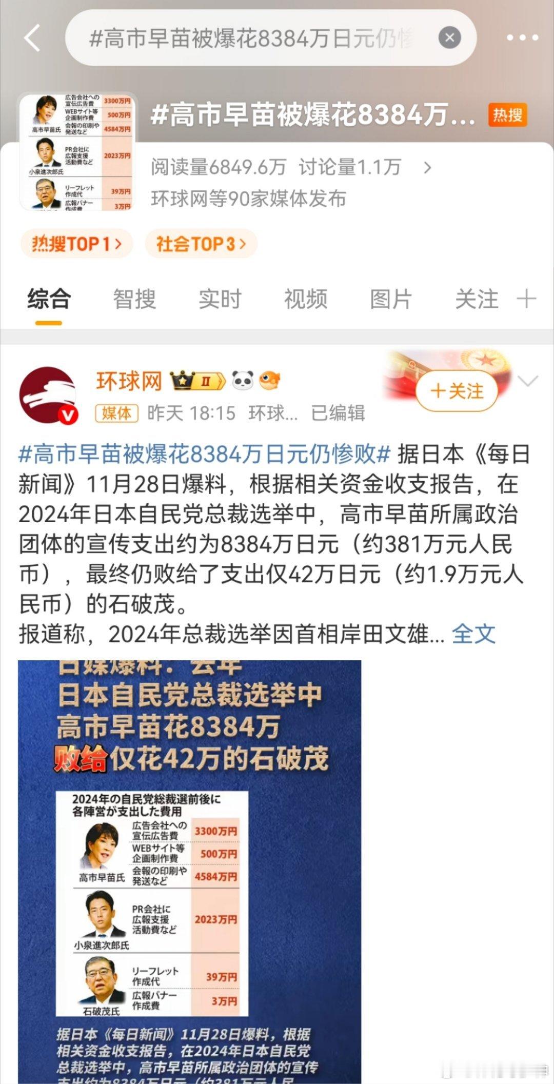 高市早苗被爆花8384万日元仍惨败这算个什么事?我关心的是,去年日本策划,今年11月,进行,认知对抗。从那时候起,给中国舆论场,投了多少钱。干啥?准备给高市早苗,极端言行解套!不是没有人知道,不是没有人预判。只是行了,打完收工!