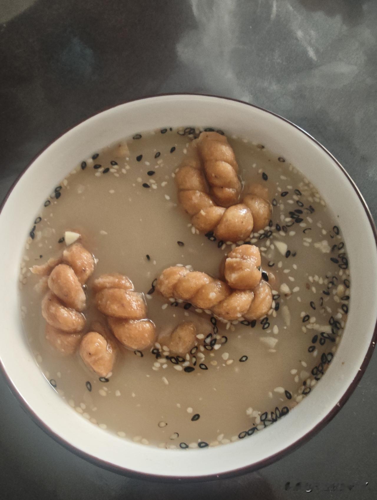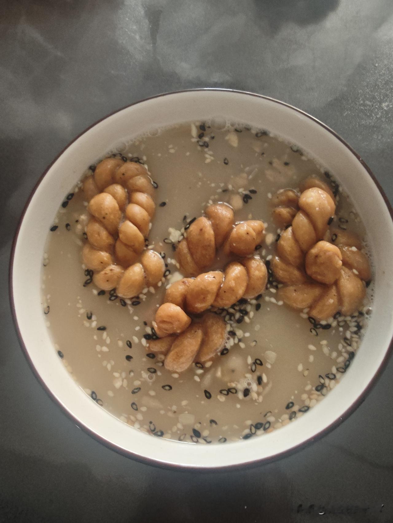 早上在家里 ,喝个买的油茶再泡几个麻花,家庭版油茶麻花。
