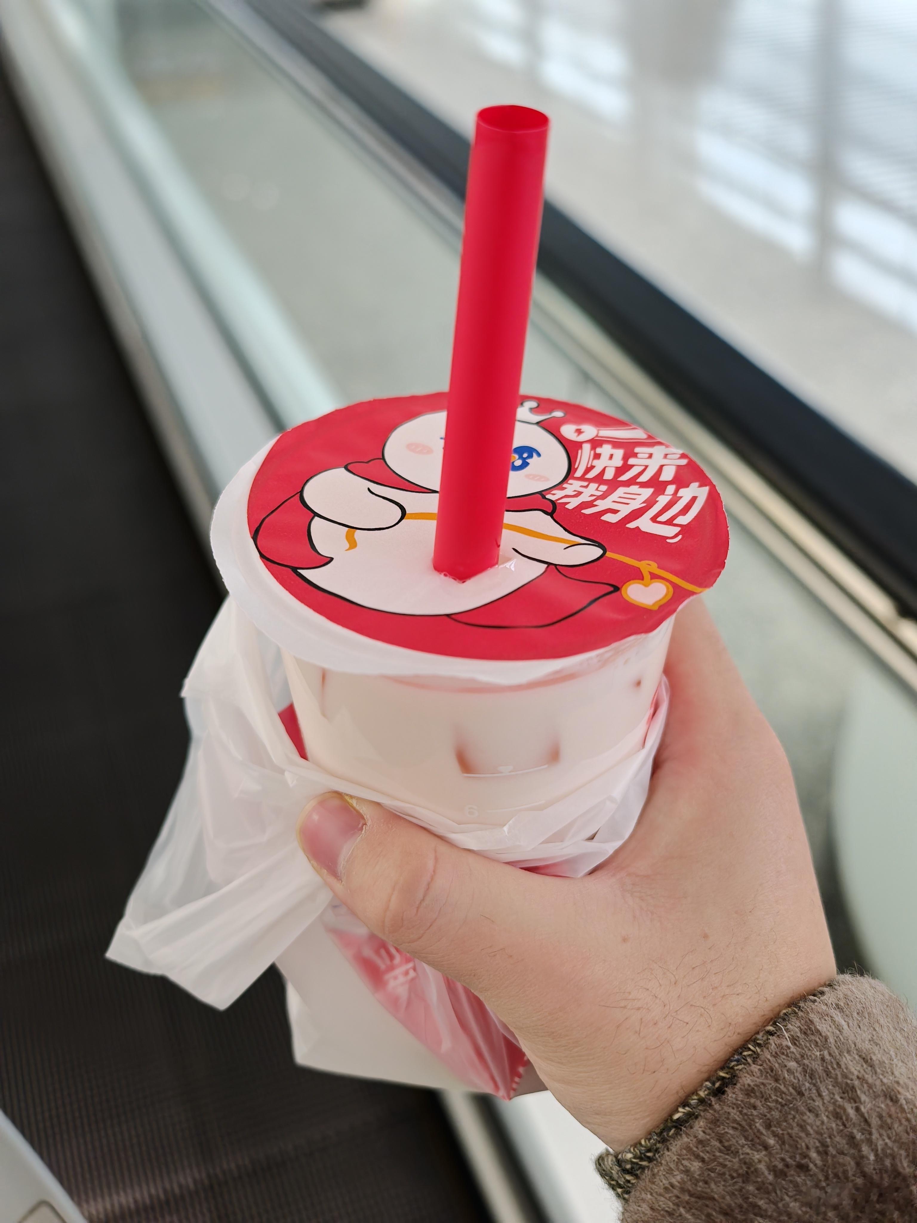 我内定的蜜雪冰城最好喝饮品——蜜桃甘露,没吃早饭可以来一杯,一杯奶茶半杯料,主要是芒果,桃子和芋圆,不过这个只能做冰的 新郑·郑州新郑国际机场