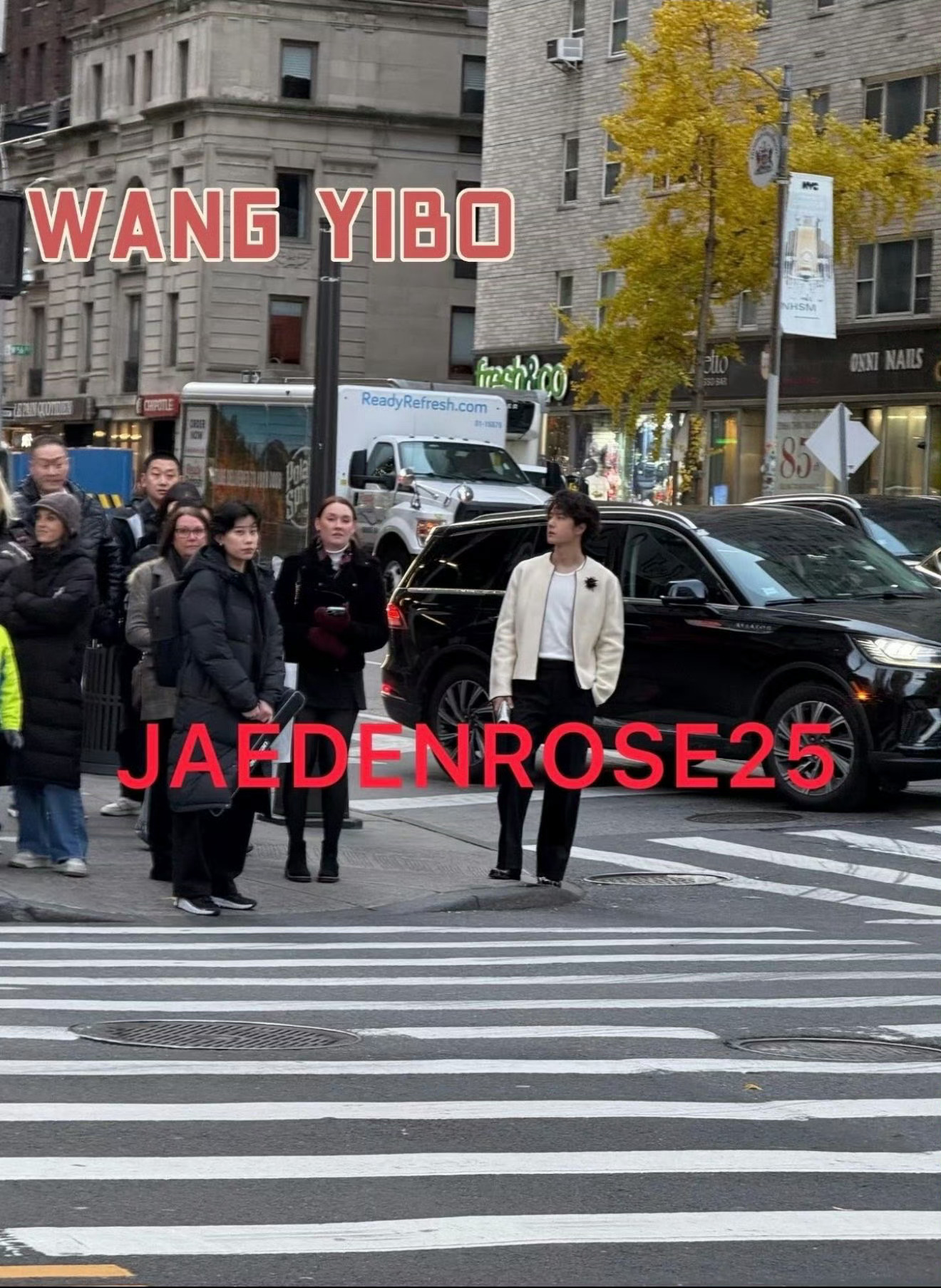 纽约街头的卷毛王一博 纽约街头的卷毛王一博!单手插兜,黑白look矜贵公子气质绝