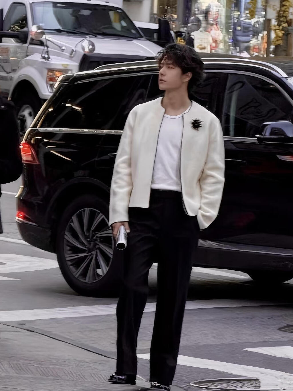 纽约街头的卷毛王一博纽约街头的卷毛王一博!单手插兜,黑白look矜贵公子气质绝