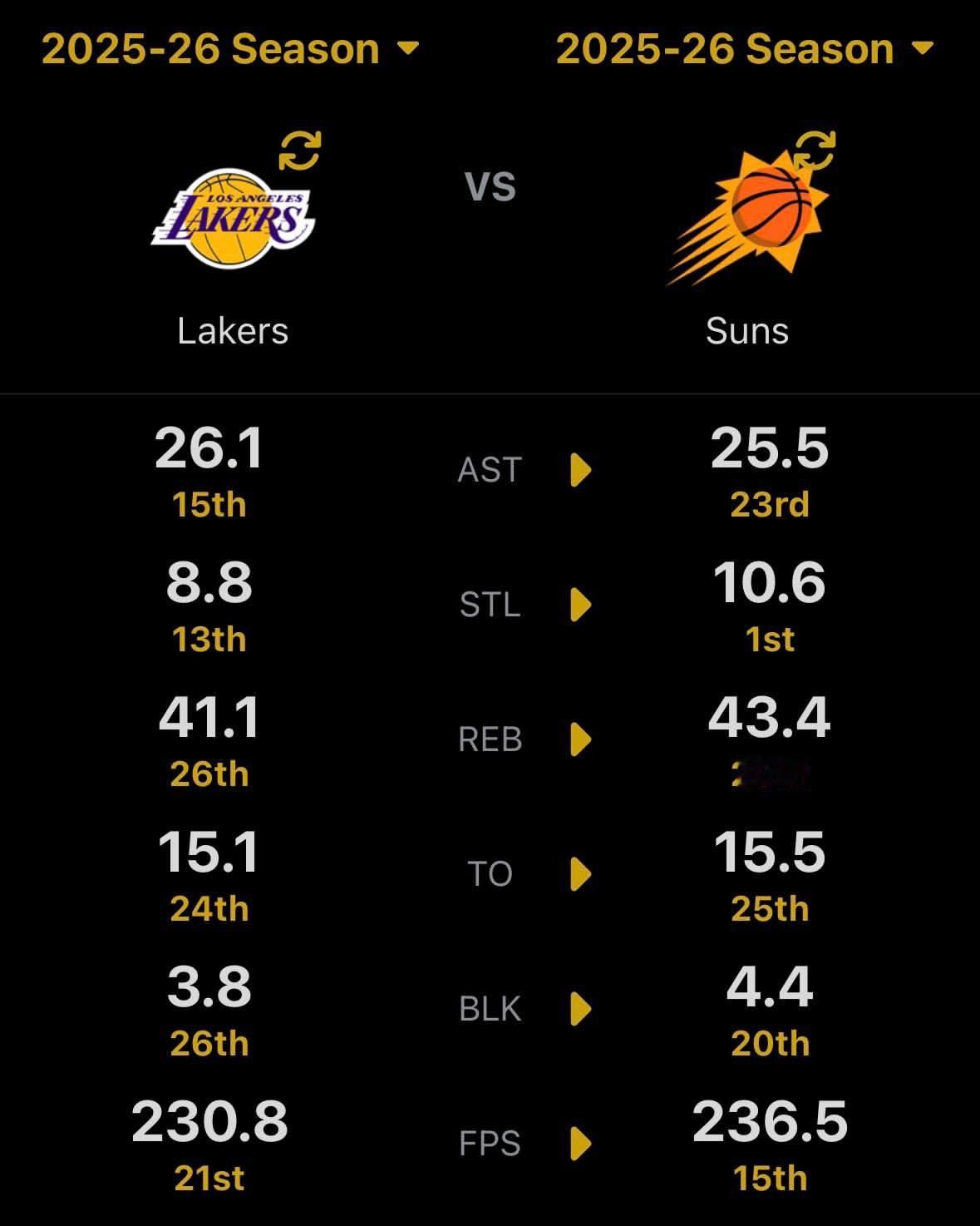 太阳的抢断联盟排在第一,而湖人排第十三,今天控制失误➕勒布朗的回归拿下八连胜!洛