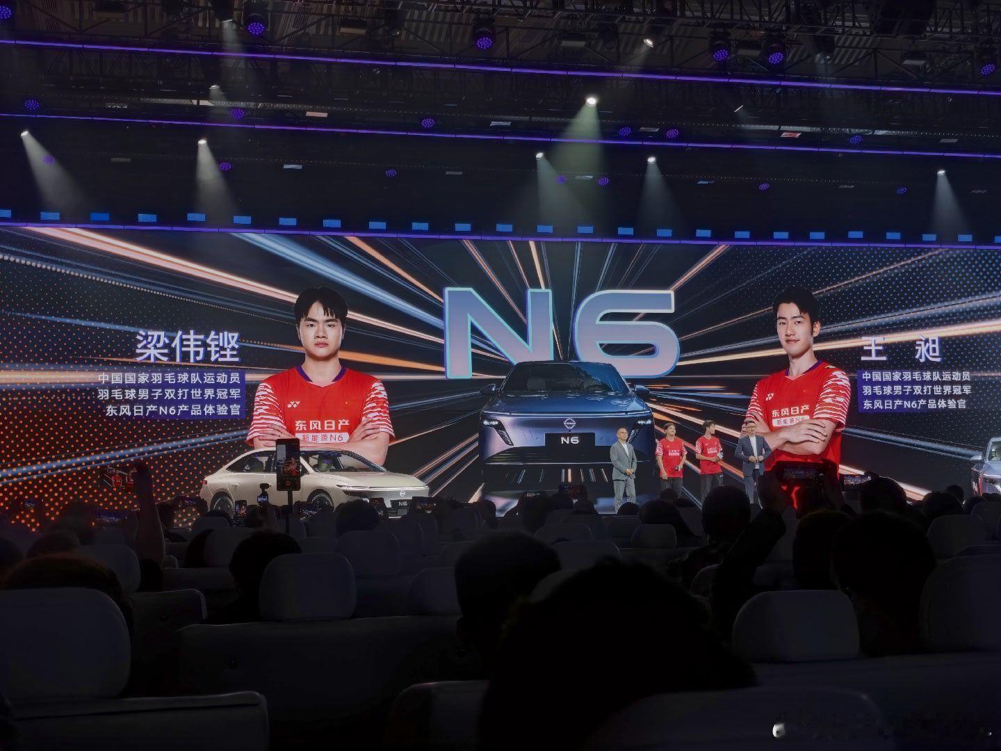 日产插混轿车N6上市发布会现场,看到了国羽男双世界冠军梁伟铿、王昶,央企合资实力与国羽冠军认证闭环了。作为日产新一代插混轿车,N6起售价9.19万元,一举打破了比亚迪和吉利等自主品牌在插混轿车的垄断,合资与自主的新一轮竞争开始了。东风日产与国家羽毛球队联名,未来国羽的冠军时刻都能看到N6的身影,日产下一场新车发布,会不会就是国羽世界杯冠军的现场?东风日产N6国羽证言央企合资品质N6大电池超舒适插混N6售9.19万起