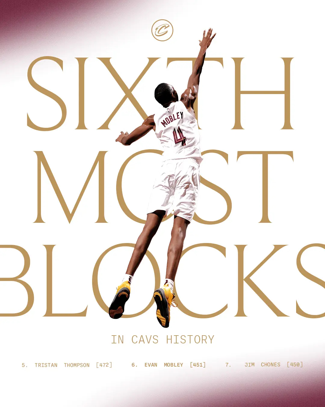 骑士新赛季篮不住莫布利 恭喜小莫!莫布利生涯送出451次盖帽,超越吉姆-琼恩斯升至队史第六骑士队史盖帽榜:1. 伊尔戈斯卡斯——1269次—771场2. 霍特-罗德-威廉姆斯——1200次—661场3. ——1087次—433场4. 勒布朗-詹姆斯——695次—849场5. 特里斯坦-汤普森——472次—708场6. 埃文-莫布利——451次—290场