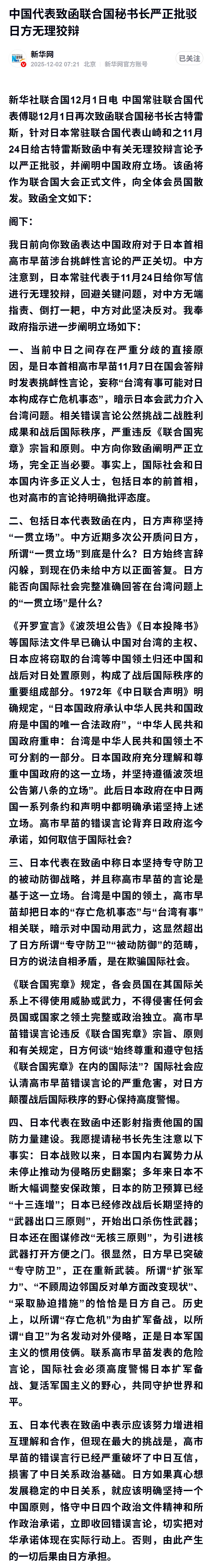 中国代表致函联合国秘书长严正批驳日方无理狡辩