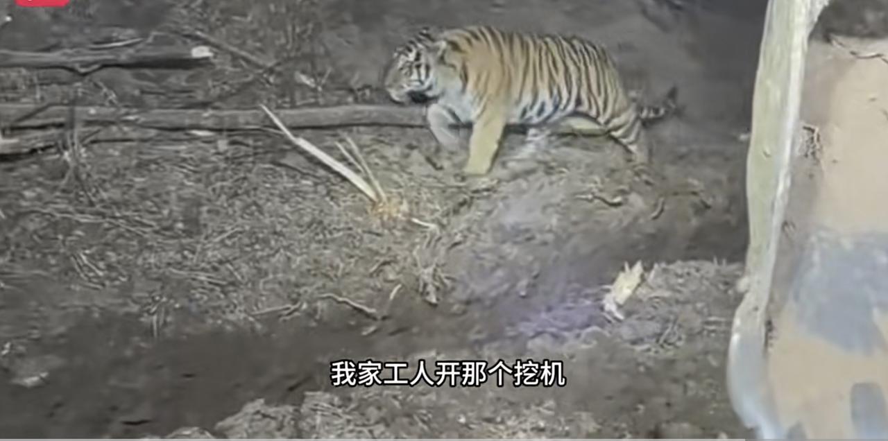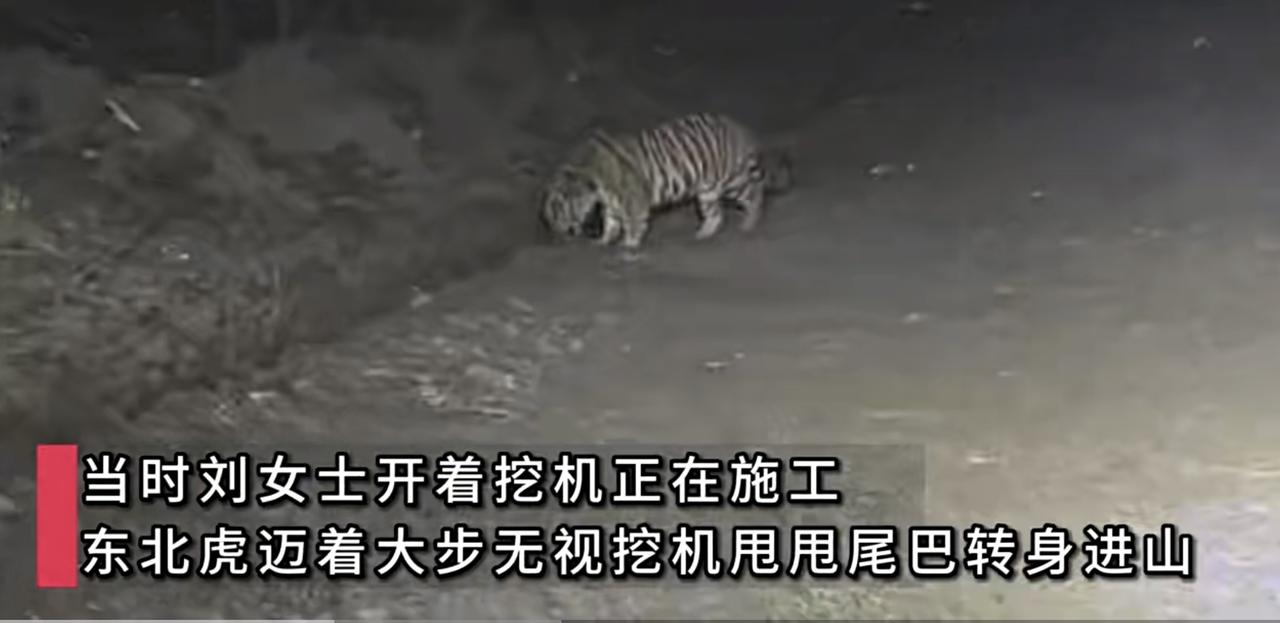 11月30日,吉林汪清!刘女士在东北虎豹国家公园开挖机施工,突然和一只东北虎近距