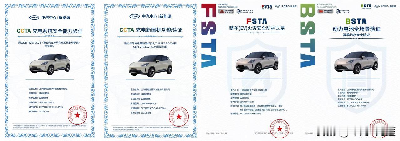 四证加持,缤果S凭借电池安全实力出圈! 果然,造纯电小车还得是看五菱啊!缤果S上市首月销量突破2.4万辆大家都知道了吧,但其实这台电车更厉害的是电池安全。 这不在11月的2025第三届新能源汽车电安全大会上,缤果S荣获中汽中心“BSTA动力电池全场景验证夏季涉水安全验证”及“FSTA整车EV火灾安全防护之星”双项荣誉,而在这之前,它已经获得了CCTA充电新国标功能验证和充电系统安全能力验证两项证书。 四项权威证书加持,已经充分展示了缤果S的安全实力了,而这背后其实是五菱研发团队的不断努力,除了在试验室的各种测试,据说他们还辗转全国12个省份测试缤果S的快充兼容表现,为不同地区的用户无忧出行打下基础。 缤果S使用的神炼电池也确实给力,迄今为止超过300万的销量碰撞0自燃,稳定性、可靠性都相当不错,有这样的稳定表现,如今再有四项权威认证加持,缤果S未来的销量,我相信还会进一步得到提升。