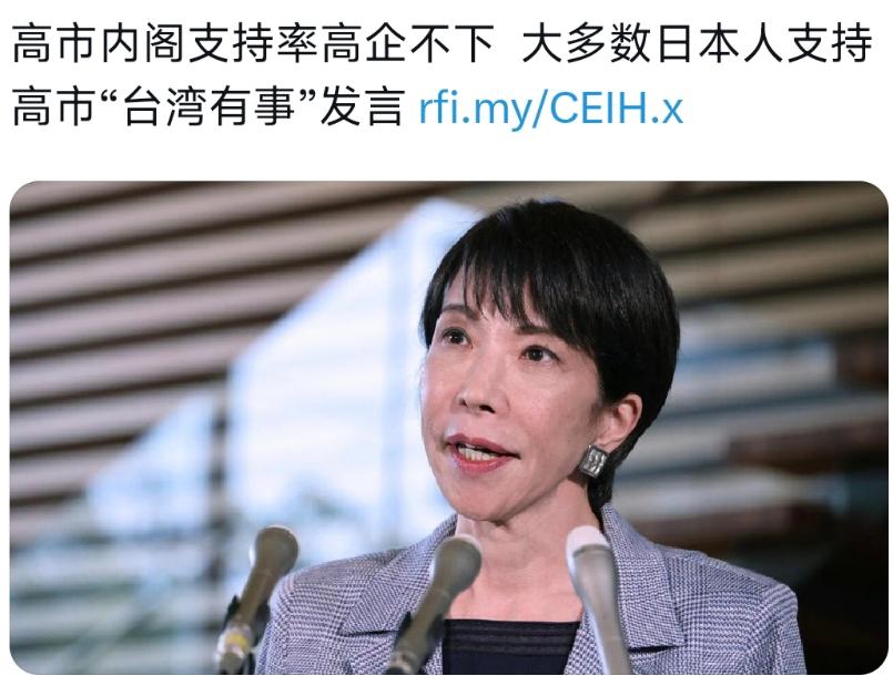 法国国际广播电台写道:“高市内阁支持率高企不不下,大多数人支持高市‘涉台’的发言