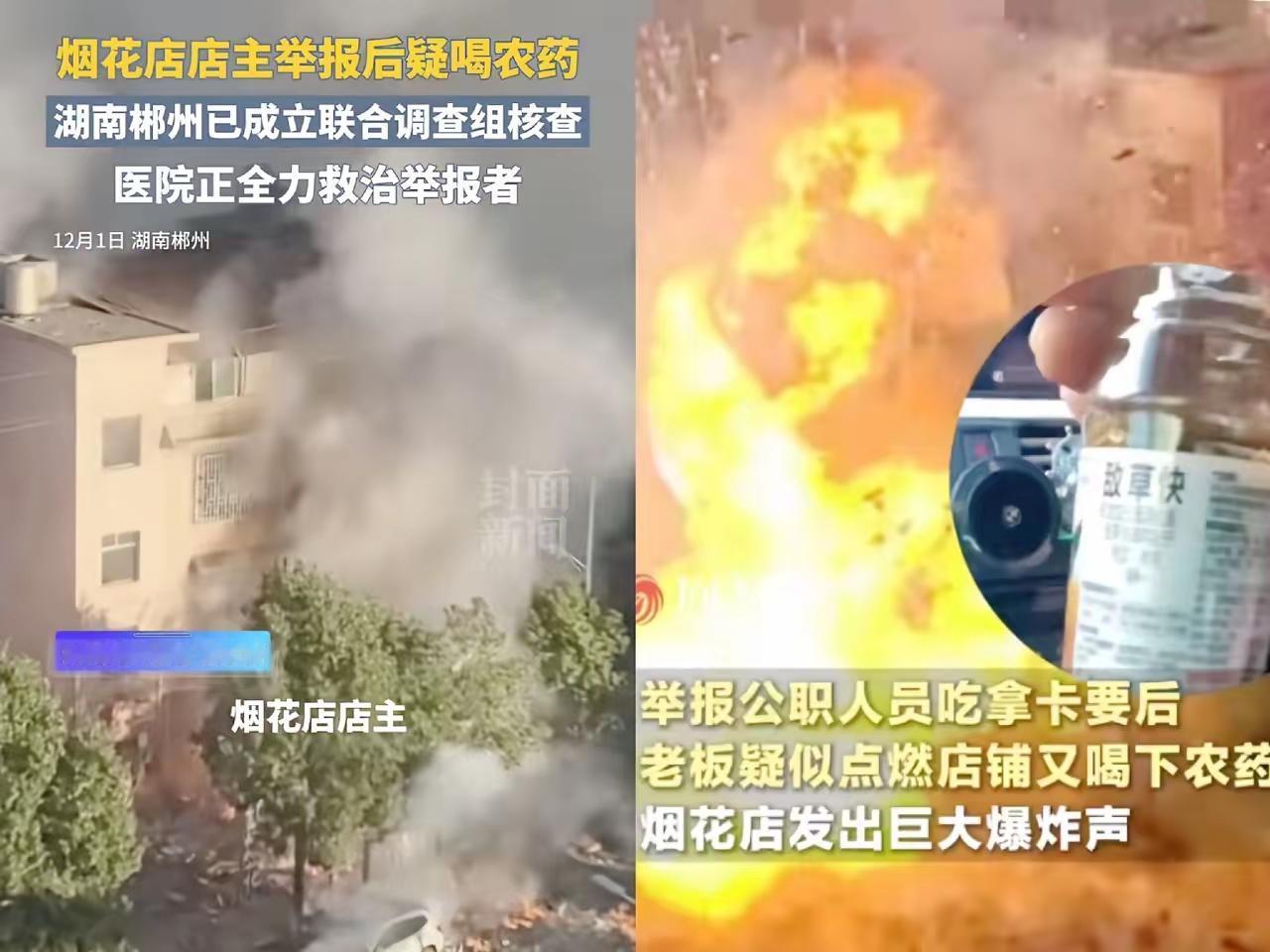 谁能想到,一个开烟花店的老板,会拿命去赌一个说法? 最近湖南郴州有个烟花店老板彭某某把事情闹大了。他原本指望过年卖烟花能赚笔钱,结果进货千多万却被卡住许可证,货卖不出去钱收不回来。 没办法他就实名举报公职人员,还在网上发视频说自己喝了"敌草快",现在正在医院抢救。 这事听起来像个极端选择。彭某某三十多岁,按理说应该为过好日子想办法,但他这手牌打得太狠。 敌草快这种农药喝了没救不了,专门伤肝肺,喝下去等于在给自己判死刑。 他为啥会走到这步?因为他囤了这么多货,要是春节卖不出去可能真要倾家荡产。 当地部门已经介入调查。但有人说这事背后可能有猫腻。 比如彭某某申请许可证为啥老被卡着?正常流程是不是被什么人故意拖延了?还有他的货物存放是否真有问题?这些细节都得等官方查清楚。 像他这样的情况好像不是孤例。之前也有商人因为证件问题陷入绝境。 这次彭某某用极端手段引起关注,可能也是没办法的办法。只是这样代价太大了,谁都担不起命的风险。 现在网上都在讨论,要是早点有人主动解决问题,这事会不会不闹到要喝农药的程度?很多小商家都怕遇到这种踢皮球的情况,光守规矩可能连饭都吃不上。 有专家分析说,彭某某可能算过一笔账:举报如果没用就喝农药自证,但这样一来事情肯定会被重视。他可能把全部希望压在这招上,结果只能听天由命。 相关部门最近几年其实也在推电子审批系统,说是要透明化。但现实中还是有人能通过关系走后门。这次事件说不定会让审批流程变得更正规些。 听说彭某某之前参加过安全培训,应该知道喝敌草快有多危险。 但他还是这么做了,可见压力确实到了极点。普通人的生意经里,有时候活路比活命还重要吗? 现在他还在重症监护室,医药费都是家人在东拼西凑。 如果他真活下来了,估计得面对更多麻烦,比如举报是否真实,视频是否被剪辑,到底有什么人牵连其中。 这事给了很多人警醒:开小店太难了,证件问题能整垮一家店。但用生命赌一局,到底值不值得?没人敢轻易下结论。