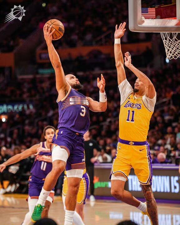 鸡皮连续俩个三分🔥🔥。这比赛奔着打花去了。太阳vs湖人