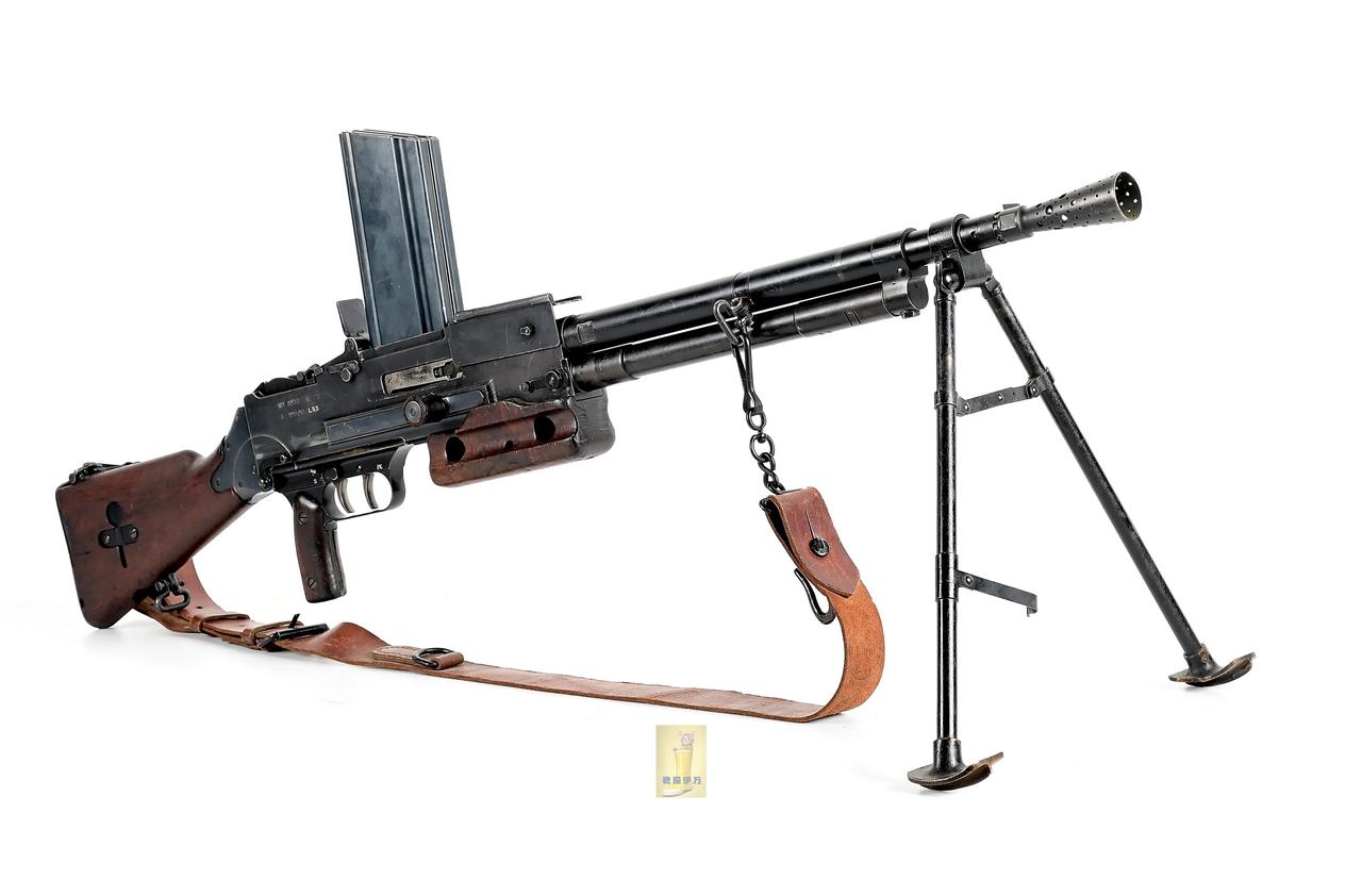 1944 年,法国,厄尔 - 卢瓦尔省。一名法国抵抗运动战士手持一挺轻机枪在一家旅馆旁留影。 厄尔 - 卢瓦尔省(Eure-et-Loir)是法国中北部大区的省份,位于巴黎西南方向。1944 年 8 月,盟军发动 “法莱斯口袋战役” 期间,该地区是法国抵抗运动与盟军协同作战的重要区域,德军在此处的防线被逐步突破。 [呲牙] 那么,现在问题来了——请问:这名法国抵抗运动战士手中的轻机枪是哪个型号? A. 英制 布伦 轻机枪(参见图2~3) B. 法制 F.M. Mle 1924 轻机枪(参见图4~5)