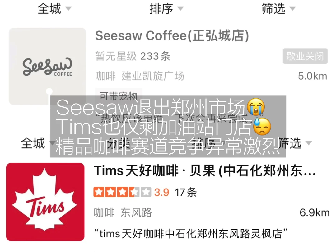三大常见精品咖啡今年在郑州都🈶新店开出,但比较惨的是Tims持续败退只剩加油站门店😓,而Seesaw直接退出郑州,冰火两重天!!!