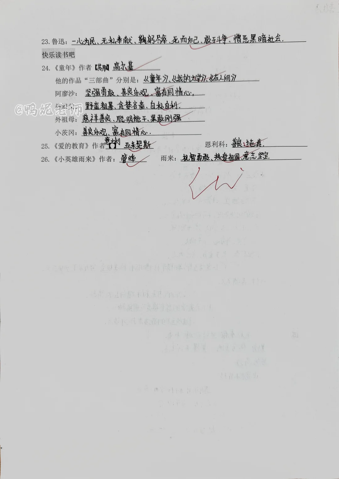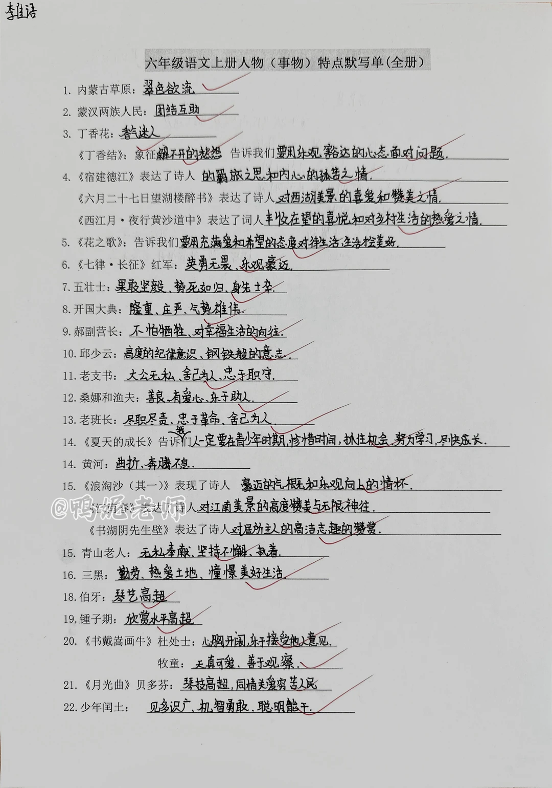 六上语文|人物特点、思想感情默写(全册)