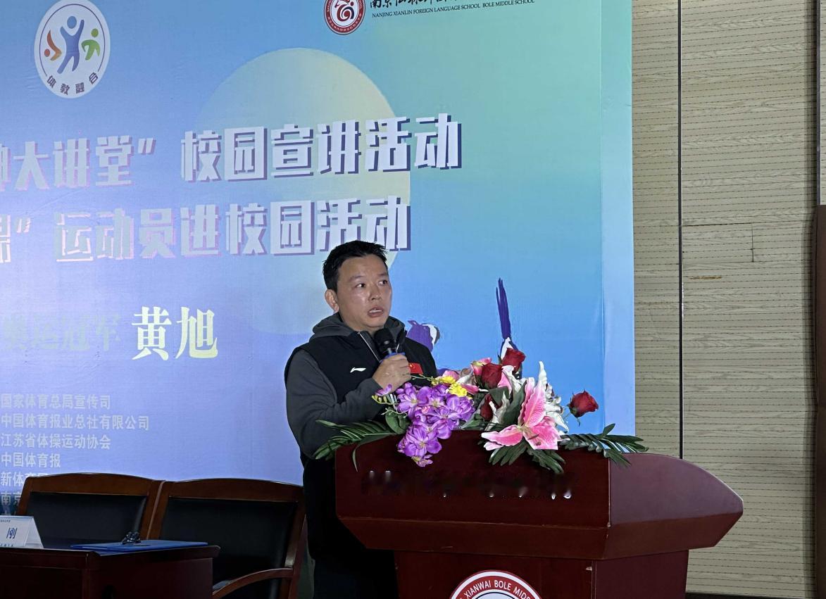 奥运冠军黄旭说坚持坚定坚守 中华体育精神大讲堂校园宣讲活动、冠军体育课运动员进校园活动12月1日走进南京仙林外国语学校伯乐中学。体操奥运冠军黄旭用“坚持、坚定、坚守”的拼搏故事诠释中华体育精神,为全体师生带来一场凝聚力量、饱含温度的青春成长课,让体育的精神光芒点亮青少年前行之路。中华体育精神大讲堂上,黄旭从自己的“奥运梦”讲起:“1984年洛杉矶奥运会上,李宁夺冠的画面在我心中种下了奥运梦的种子。”他结合自身跌宕起伏的运动生涯,以“V”字人生为喻,回顾了职业生涯的关键节点:2000年悉尼奥运会中国体操男团夺冠的“完美启航”,2004年雅典奥运会失利后在质疑中坚守的砥砺前行,直至2008年北京奥运会涅槃重生、再登巅峰的荣耀时刻。“‘中华体育精神’带给我的力量,更在于面对失败不放弃、面对挑战敢拼搏。”黄旭的分享朴实又真诚,让同学们深刻体会到冠军光环背后的坚持与付出。“冠军面对面”互动环节,同学们踊跃举手、积极提问。当被问及“训练太苦如何坚持”时,黄旭回应:“要有坚定的信念,告诉自己再坚持一下,前方可能就是光明。”对于“比赛前会紧张吗?怎么克服?”的好奇发问,他分享了自己的调节小技巧,幽默又实用的回答让现场笑声不断,也让奥运冠军的形象愈发真实可亲。冠军体育课上,黄旭带领同学们一起完成高尔夫专项热身操,细致讲解了这项运动的基本常识与科学锻炼方法。“体操是运动的基础,高尔夫的挥杆击球,需要扎实的核心力量与精准的把控能力。”他结合自身运动经验,让专业知识变得通俗易懂。随后,30名同学分组体验击球,黄旭穿梭在各小组间,手把手纠正动作细节,耐心指导发力技巧,让同学们在实践中感受运动魅力。活动尾声,黄旭发起“21天运动打卡计划”,鼓励大家养成规律运动的好习惯。“运动不仅强身健体,更能锤炼意志。希望同学们能坚持21天,更能带动身边人一起动起来,在体育中收获快乐、成长与力量。”本次活动由国家体育总局宣传司主办,中国体育报业总社有限公司、江苏省体操运动协会承办,中国体育报、新体育网、南京市中小学校园高尔夫球联盟、中体环奥(南京)体育科技有限公司、南京仙林外国语学校伯乐中学协办。活动旨在让中华体育精神扎根校园,助力青少年在运动中强意志、健身心,绽放青春光彩,奔赴精彩人生。