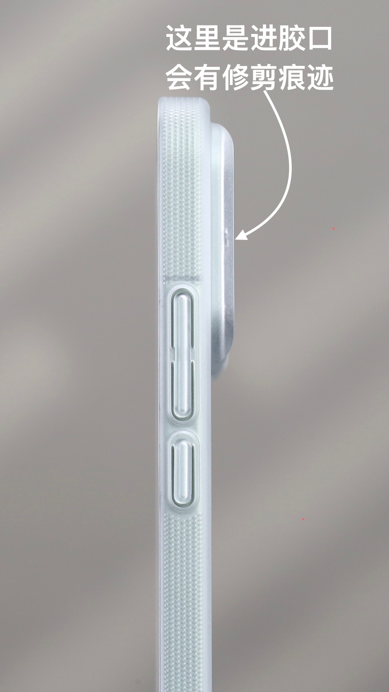 小米17ProMax的超薄斜隐壳,进胶口在摄像头左右两个边上,水口修剪掉后会有