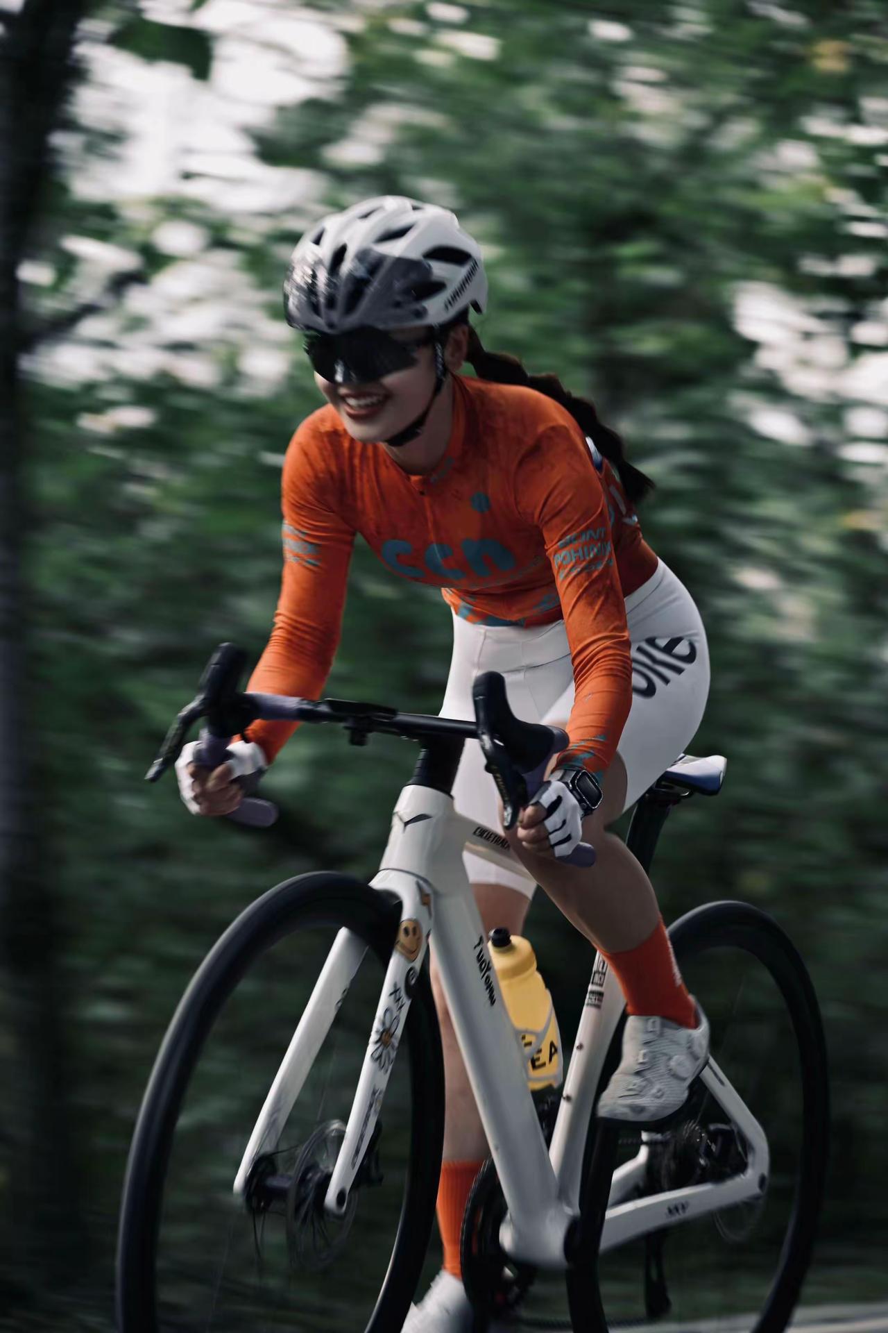 每日运动,骑行少女驰骋在绿意盎然的道路上,享受速度与自由!追风。。。。