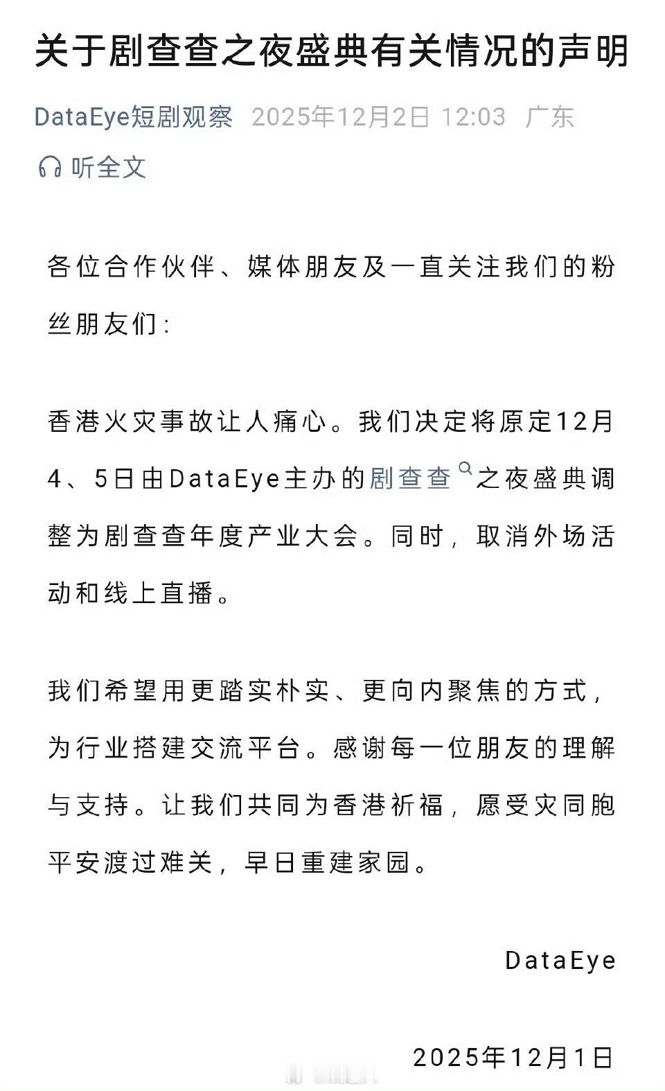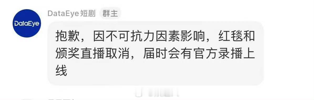 剧查查取消直播 剧查查取消直播以及外场活动“因不可抗力因素影响,红毯和颁奖直播取消,届时会有官方录播上线”剧查查直播取消