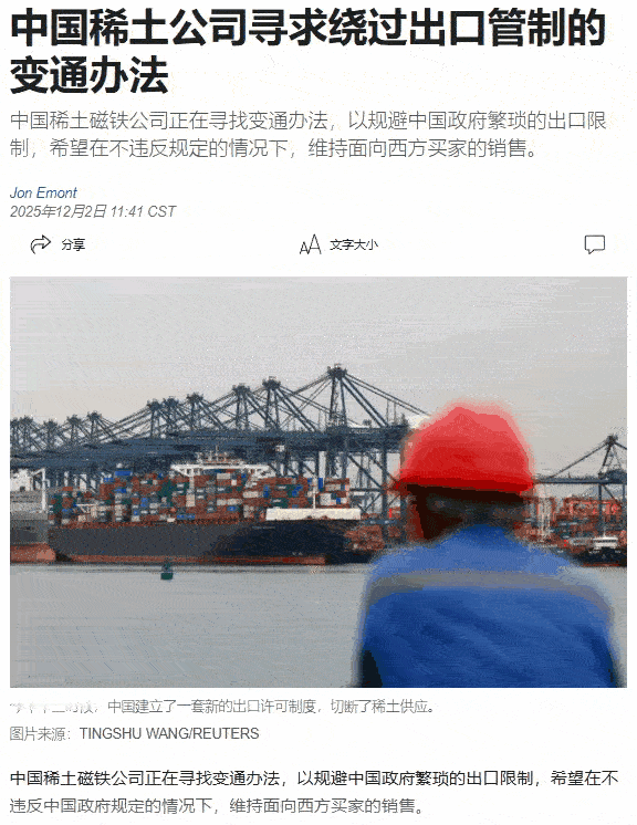 华尔街日报2日报道说:“中国稀土磁铁公司正在寻找变通办法,以规避中国政府繁琐的出