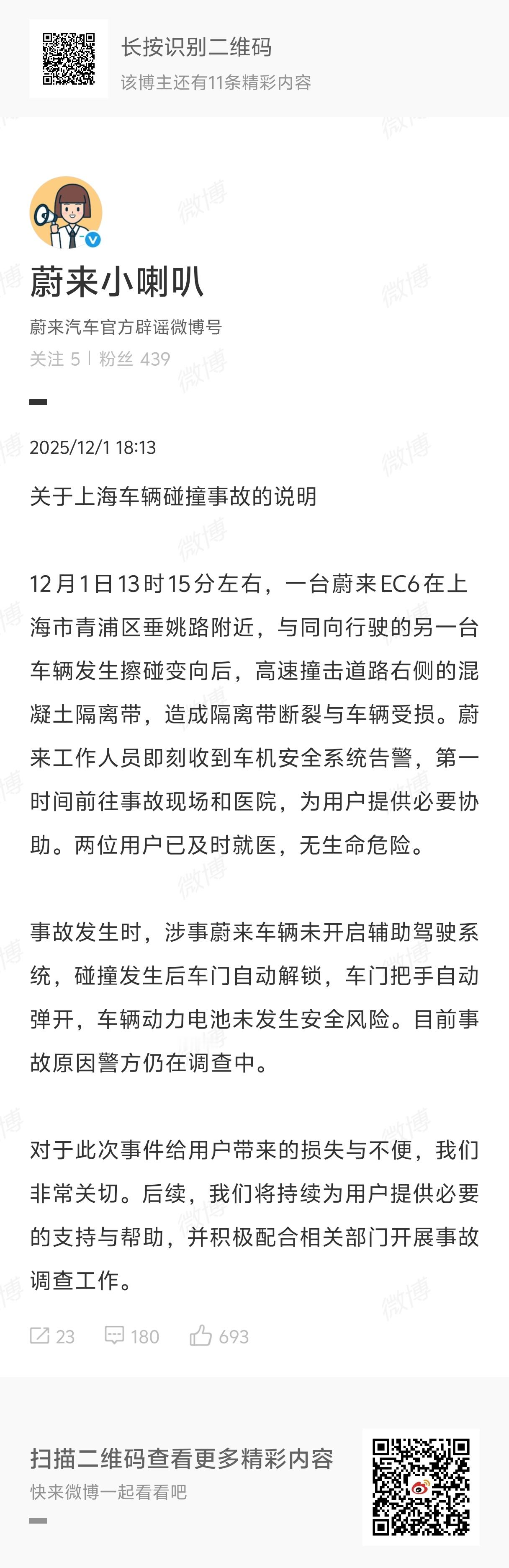 蔚来事故声明出来了,就是没啥热度,其实仔细想想,人没出事,电池也没着火,保险反正能赔,这不就挺好嘛