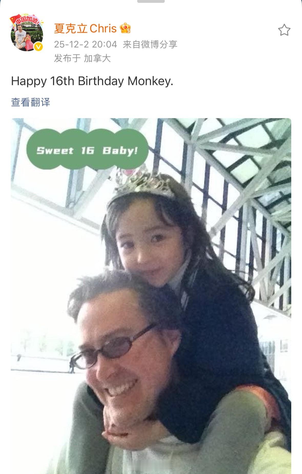 夏克立晒照为女儿庆生夏克立晒照为女儿夏天庆生 夏克立晒照为女儿夏天庆生“Happy 16th Birthday Monkey”