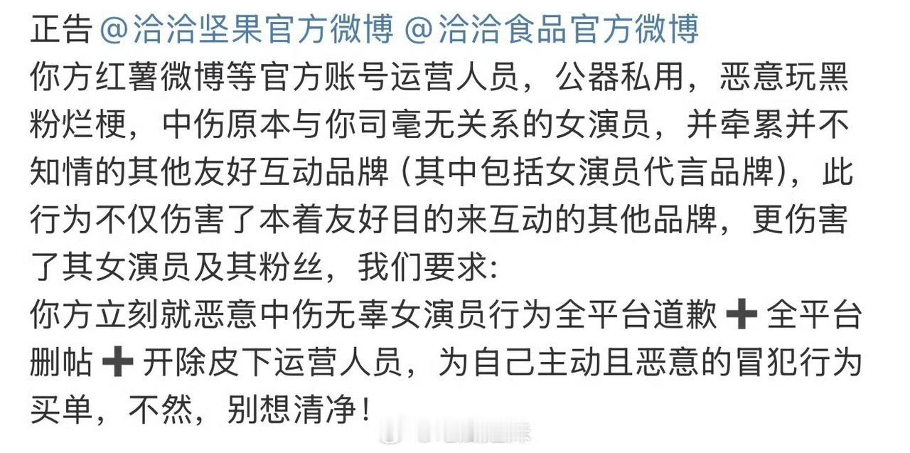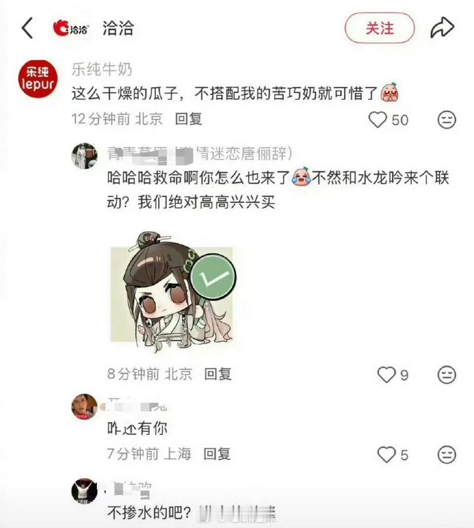 这波操作真的迷惑!洽洽疑似暗戳戳用“瓜子无多余水分”内涵杨紫新剧《国色芳华》,暗讽意味拉满。杨紫粉丝直接炸锅,集体喊话品牌方赶紧道歉,别玩这种低级内涵套路,好好卖瓜子不行吗?非要蹭热度引战,这波操作属实败好感!