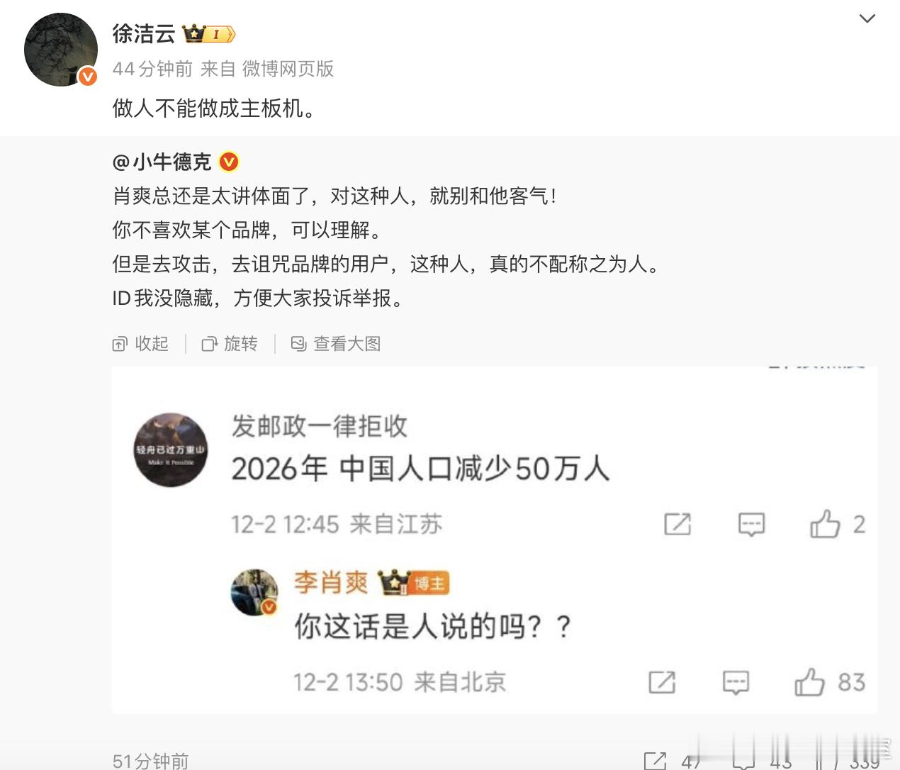雷军刚发文宣布小米汽车成功交付第50万辆,就有黑子坐不住了,评论区直接说“2026年中国人口减少50万人”?小编我都看懵了,这说的是人话吗,说这样的话良心不痛吗?不过想想也正常,小米从下场造车开始到现在这炮火就没停过,一会车祸带节奏说小米是绿化带战神,一会又黑小米产品有硬伤,连车主都不放过直接开骂诅咒……不过网友的眼睛都是雪亮的,小米连续3月交付破4万,提前完成35万辆的年度目标,销量足以说明一切问题了!