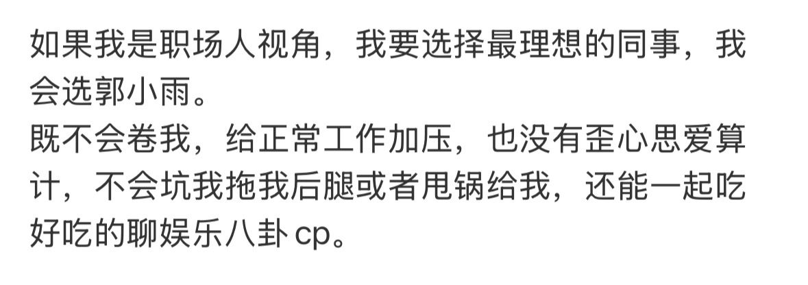 第一次get到了何蓝逗 何蓝逗这次演技真的在线,郭小雨的每个举动都透着鲜活,从找工作时的奔波到上班后的点滴,她都演出了我们共同的记忆,剧中她买吃的安慰加班同事的桥段,让我想起自己团队里的暖心时刻,这种剧才是我们需要的生活指南啊。即刻上场
