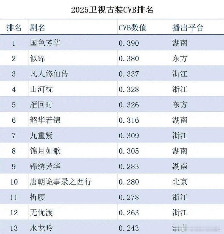 2025年全卫视古装剧CVB收视排名