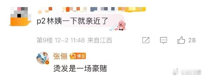 张俪 烫发是场豪赌 被张俪的幽默狠狠戳中 [笑 cry]!林喜柔 20 年前爆炸