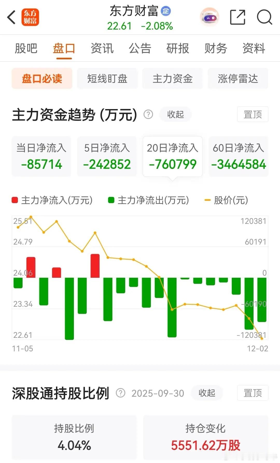 东方财富和中信证券今天低开低走,分别下跌了2.08%和1.08%,其中东方财富更是连续13天都被主力资金净卖出,而中信证券则是连续三天被主力资金净卖出。东方财富今天早盘低开后一路震荡走低,几乎以最低价报收,股价也是创出了本轮调整新低,今天的下跌幅度为2.08%,收盘报价22.61元,成交金额为为53.26亿元。在资金流向上,今天被主力资金净卖出了8.5714亿元,目前已是连续13个交易日被主力净卖出了,近五个交易日得净卖额为 24.2852 亿元,而近20个交易日得合计净卖出金额为76.08亿元。从走势上看,本周前两个交易日均以下跌为主,已经打破了上周在低位横盘整理的态势,再次破位下行。中信证券今天同样是低开低走,收盘时下跌了1.08%,收盘报价为27.37元,全天的成交金额为 17.94 亿元,已经缩小到了极致。在资金流向上,今天被主力资金净卖出了2.9565亿元,目前是连续三天被主力资金净卖出,近五个交易日得合计净卖出金额为4.8522亿元。从走势上看,目前依然是在低位缩量横盘整理。至于更详细的技术分析,可以查看上一篇中关于券商概念板块走势的技术分析。对于东方财富与中信证券,这对券商“双巨头”近期走势背离业绩的诡异现象,正在引发市场对“估值陷阱还是黄金坑”的激烈博弈。从业绩和近期走势上看,三季报亮眼但股价年内下跌。下面是详细情况!1、中信证券:2025年Q3净利润94.40亿元创历史新高(同比+51.54%),前三季度总资产突破2万亿元,成为国内首家资产规模破2万亿元的券商。但是年内股价跌幅却高达5.26%,月线三连阴。2、东方财富:Q3净利润35.3亿元(同比+77.74%),增速领跑头部券商,轻资产模式净利率高达 74.58% 。然而年内股价的跌幅却是高达12.23%,11月单月的跌幅为8.24%,月线同样也是三连阴,且今天股价再创本轮调整新低价。