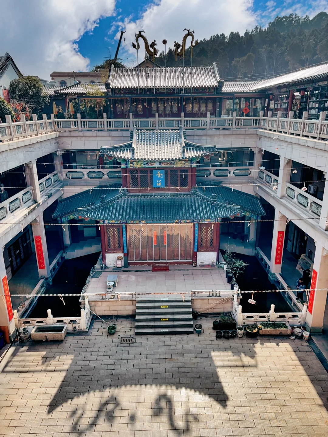 🌟整座建筑一共分三层,三清观在蕞上面那层,周围一圈还有龙王殿、财神殿、天师殿、斗姥殿、华祖阁、文昌阁、月老殿等。