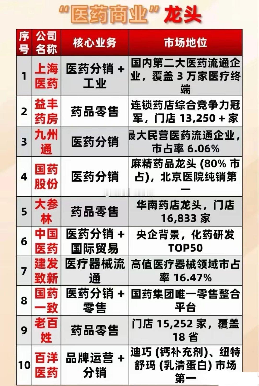 医药商业板块竞争格局深度解析:分销、零售、专业流通三大赛道的分化与机遇医药商业作为医药产业链的核心枢纽,其格局由分销、零售、专业流通三大细分领域共同构成。不同赛道的企业凭借差异化的资源禀赋与战略定位展开竞争,在政策规范与市场需求双重驱动下,行业正呈现“规模化整合+专业化升级”的发展趋势。一、医药分销:渠道壁垒筑护城河,规模化与专业化双轮驱动医药分销领域的核心竞争力集中于终端覆盖广度与渠道服务深度。其中,具备央企背景的头部企业凭借政策资源与资金优势,在特殊药品供应、区域纯销等细分市场确立了稳固的龙头地位,尤其在医保目录药品、急救药品等刚需品类的流通中占据主导。民营流通企业则通过市场化运营机制实现差异化突围,一方面通过并购整合扩大区域覆盖范围,另一方面聚焦细分病种或特色药品领域打造专业服务能力,形成与央企互补的市场格局。整体来看,行业正朝着“全国性龙头+区域强势企业”的格局演进,规模化降本与专业化服务成为企业核心竞争力。二、药品零售:集中度加速提升,连锁化与数字化重塑行业药品零售赛道的集中度持续走高,连锁药店成为行业发展的核心驱动力。头部连锁通过跨区域并购、加盟扩张等方式快速拓展门店网络,多家企业门店数量已突破万家,形成全国性布局;区域龙头则深耕本地市场,依托渠道下沉、会员服务等优势巩固区域壁垒,行业“强者恒强”的马太效应愈发明显。数字化转型成为零售药店的重要升级方向,线上线下融合的O2O模式快速普及,企业通过智慧门店、健康管理服务等多元化场景提升用户粘性。同时,处方药外流、医保定点资质放开等政策红利,进一步推动零售药店向“专业健康服务平台”转型,行业竞争从单纯的价格战转向服务与供应链能力的综合比拼。三、专业流通:高值领域成核心战场,头部企业主导市场专业流通领域聚焦医疗器械、高值耗材、特殊药品等细分品类,这类产品对流通环节的仓储物流、合规管理、专业售后等要求更高,因此市场份额高度集中于头部企业。企业需具备完善的冷链运输体系、专业的产品培训能力以及与医院、医疗机构的深度合作资源,才能在细分赛道立足。随着医疗技术的进步与消费升级,高值医疗器械、创新药等品类的流通需求持续增长,带动专业流通领域快速发展。头部企业通过纵向整合供应链、横向拓展服务场景,不断提升行业壁垒,中小流通企业则逐渐向区域特色服务或细分品类代理方向转型,行业分化趋势明显。行业展望:防御属性凸显,核心竞争力决定长期价值医药商业板块凭借刚性需求属性,在市场波动中展现出较强的防御价值。在政策推动行业规范化整合的背景下,具备广泛终端网络、高效供应链管理能力、数字化转型领先的企业,更能抵御行业变革风险并抢占市场份额。长期来看,行业发展潜力取决于三大核心因素:一是供应链效率的持续优化,二是数字化工具在采购、销售、服务等环节的深度应用,三是多元化服务模式的落地(如健康管理、慢病服务等)。随着医药产业链的不断完善,医药商业板块将在“流通+服务”的双轮驱动下,迎来更广阔的发展空间。