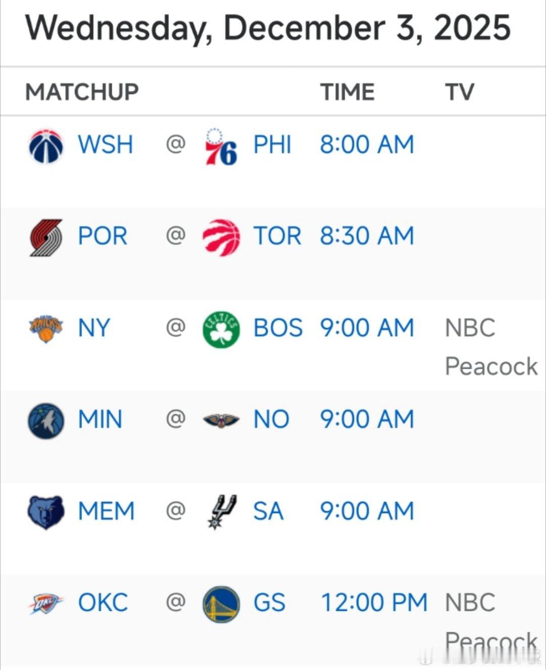 明日6场比赛预告🎬9:00 尼克斯vs凯尔特人,森林狼vs鹈鹕12:00 雷霆