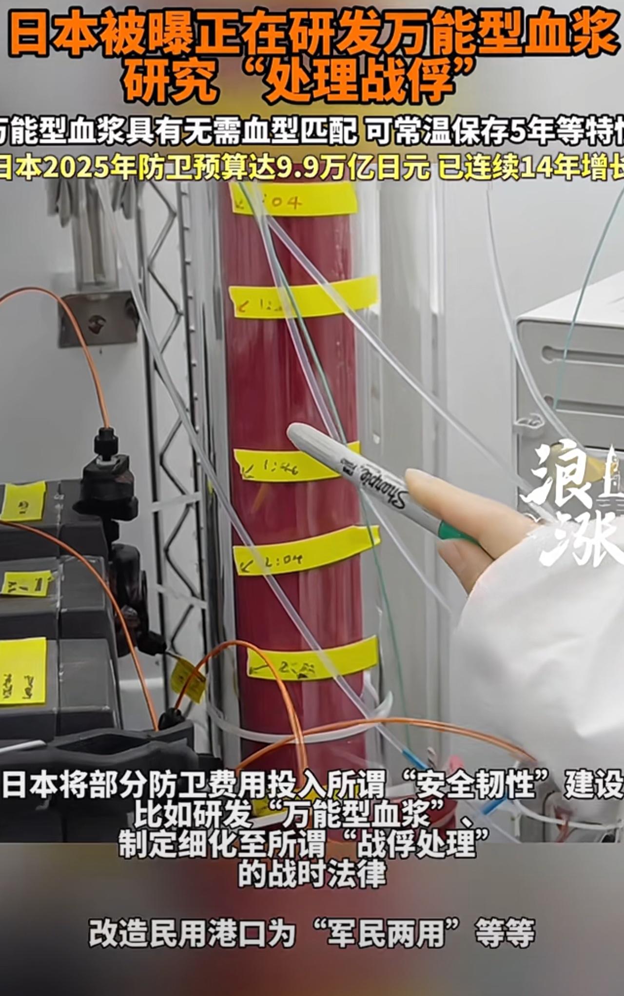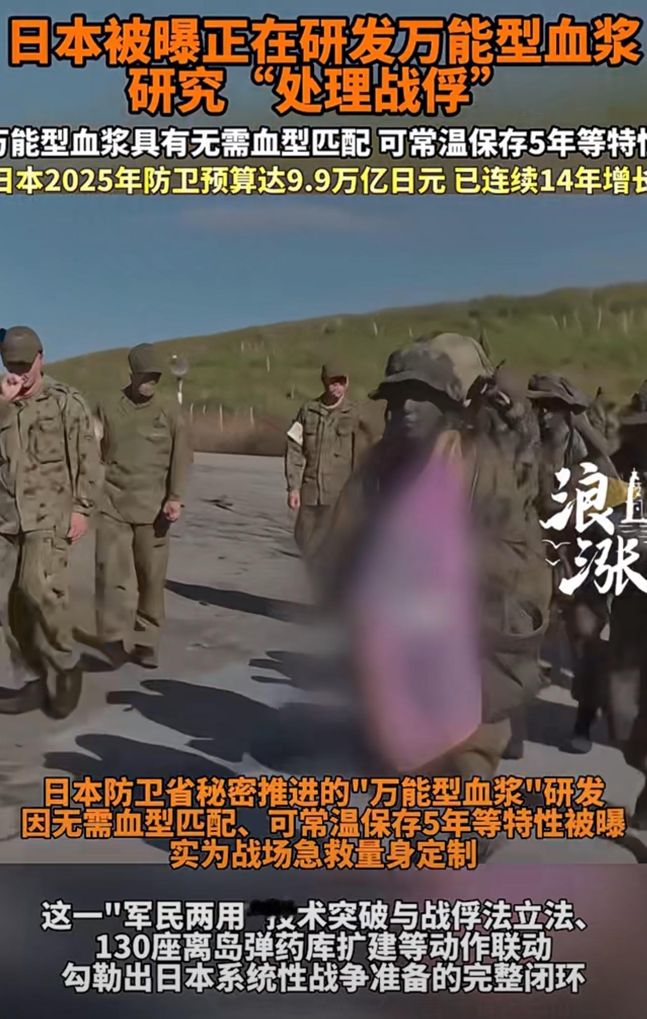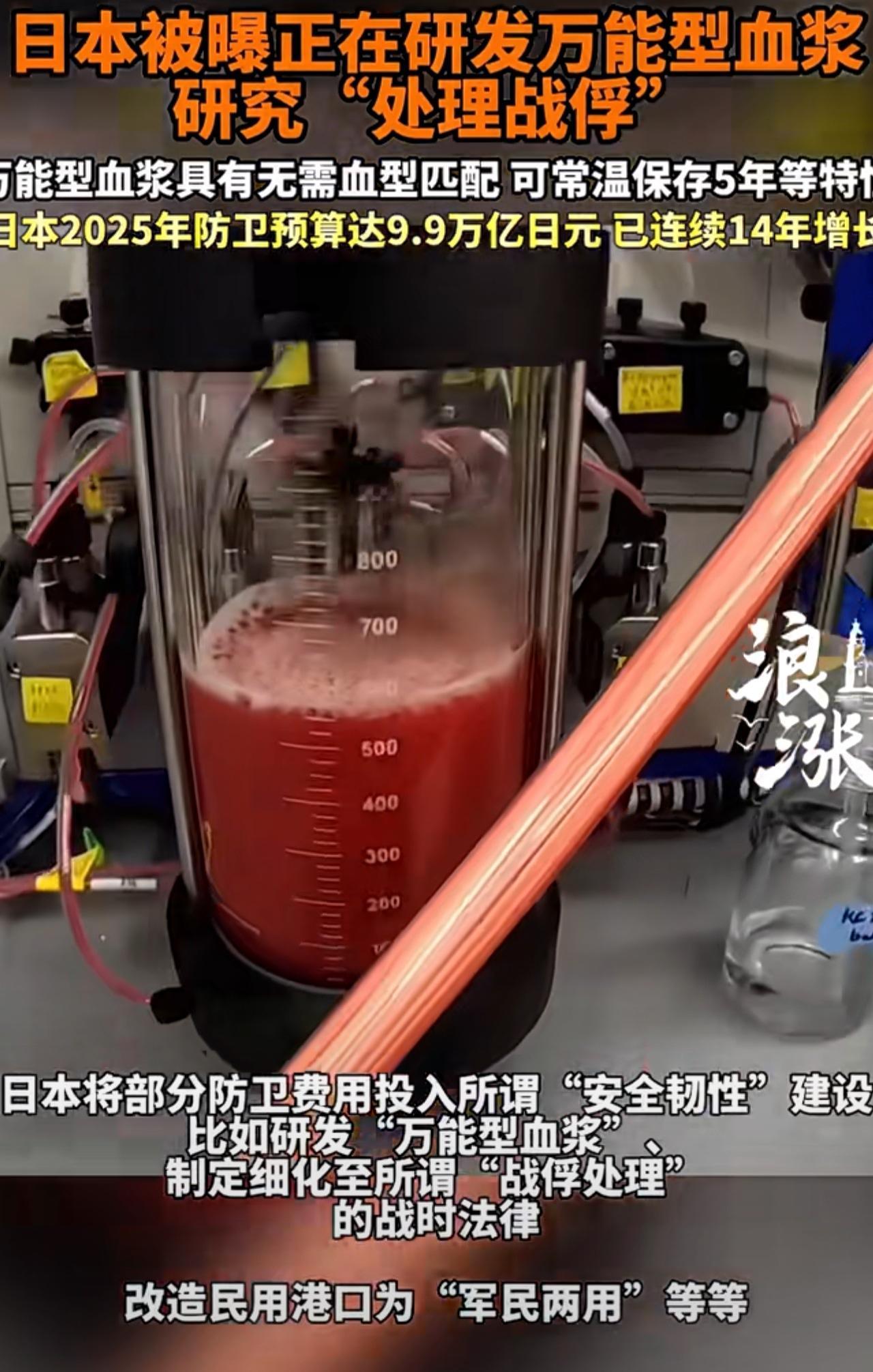 为战争准备何其嚣张! 日本军事准备细节曝光 大肆投入防卫费用正在研发不知所谓的“万能血浆”!表示为了国家安全建设需求。 研究“处理战俘”,并且改造民用港口为军用! 就是你的血能用到其他血型人的身上,理论上只要清除红细胞表面特异抗原就可以用,例如你ABO型就是对应抗原。 上次国内也发了不分血型匹配的事。 日本可能打生化武器,要不研究血液干吗?