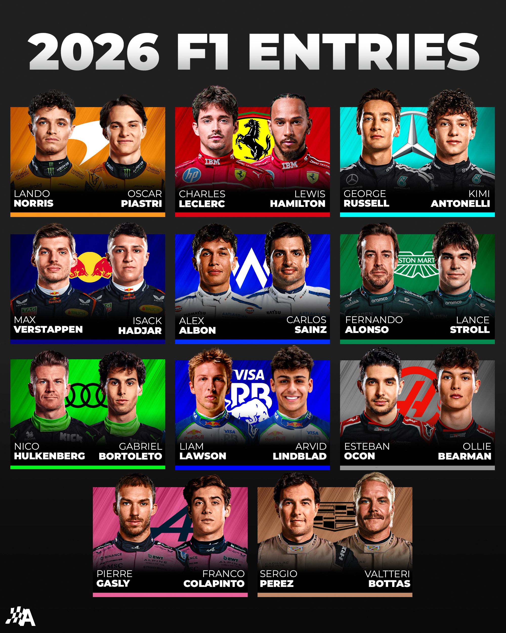 F1冷数据 2026赛季揭幕战时,各车队车手平均年龄36 凯迪拉克35.5 阿斯顿马丁34.5 法拉利30 威廉姆斯29.5 奥迪26 Alpine25 迈凯伦24.5 红牛24 哈斯23.5 梅赛德斯21 红牛二队F1 2025F1阿布扎比大奖赛 红牛官宣2026赛季车手阵容