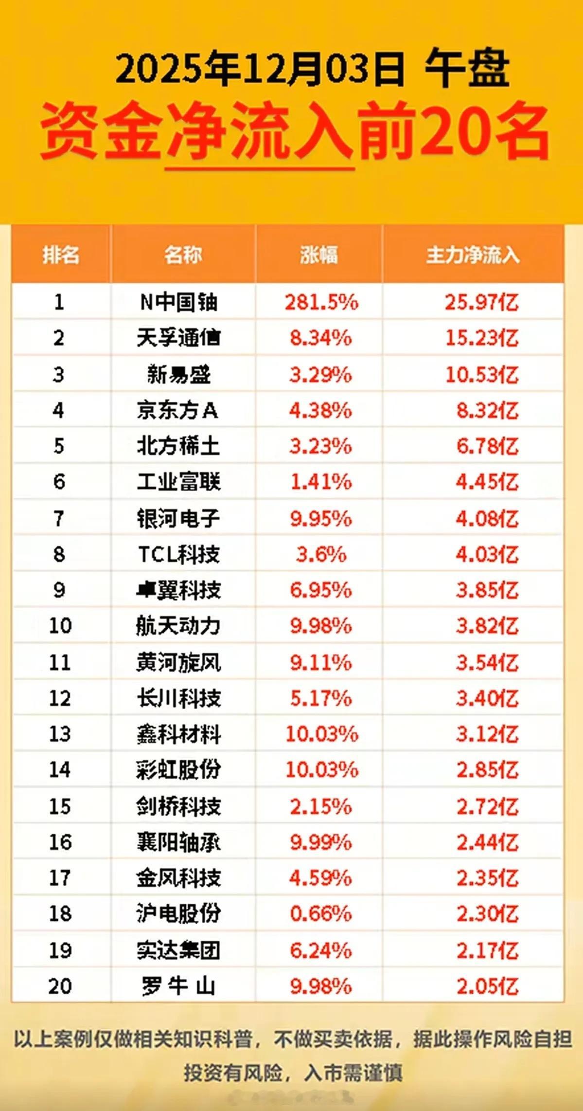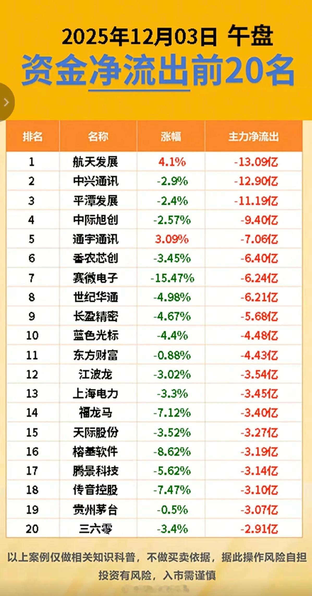 12.3周三 主力大资金 流向 TOP20!能源金属碳酸锂,锂矿领跌。医药商