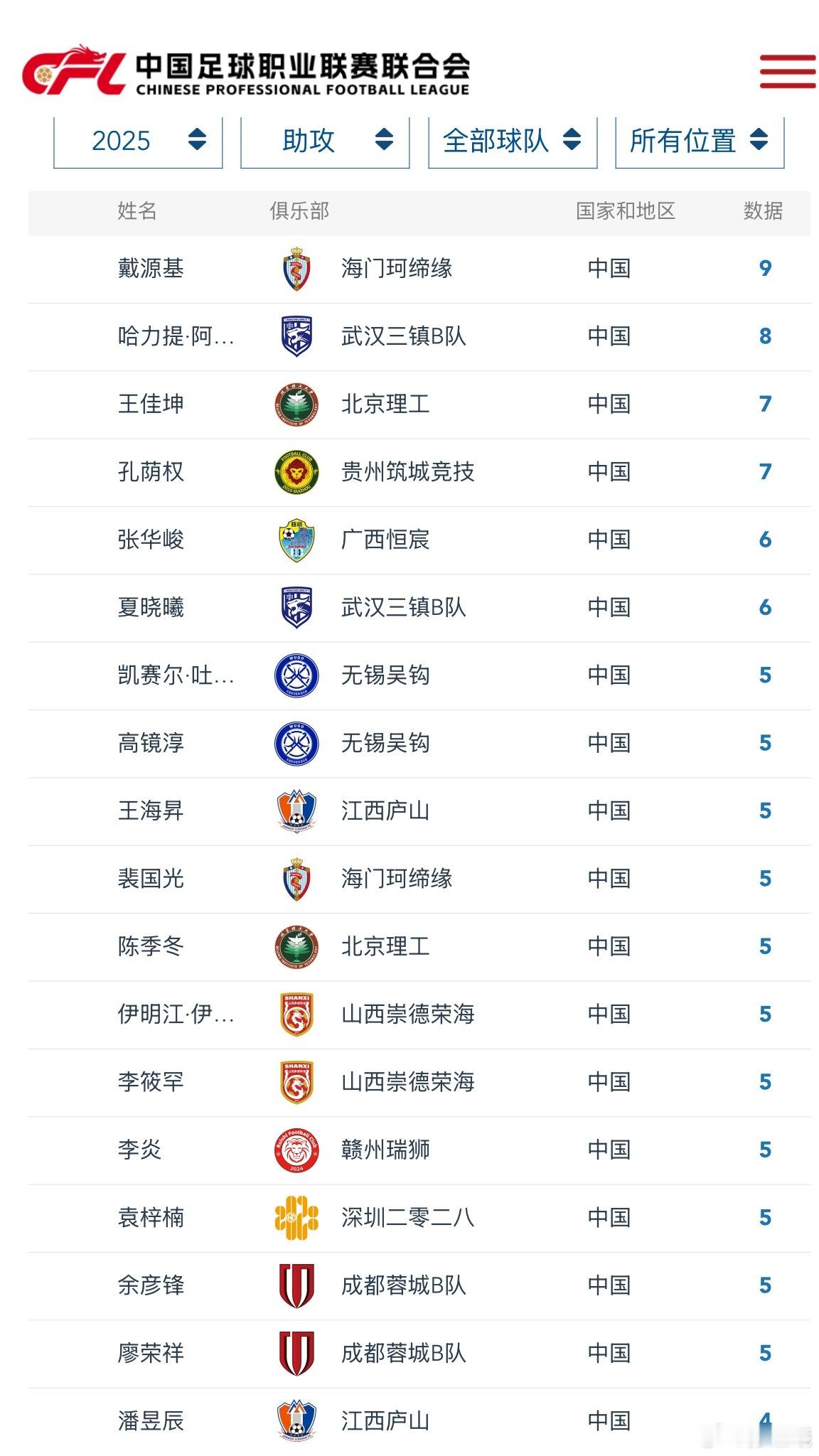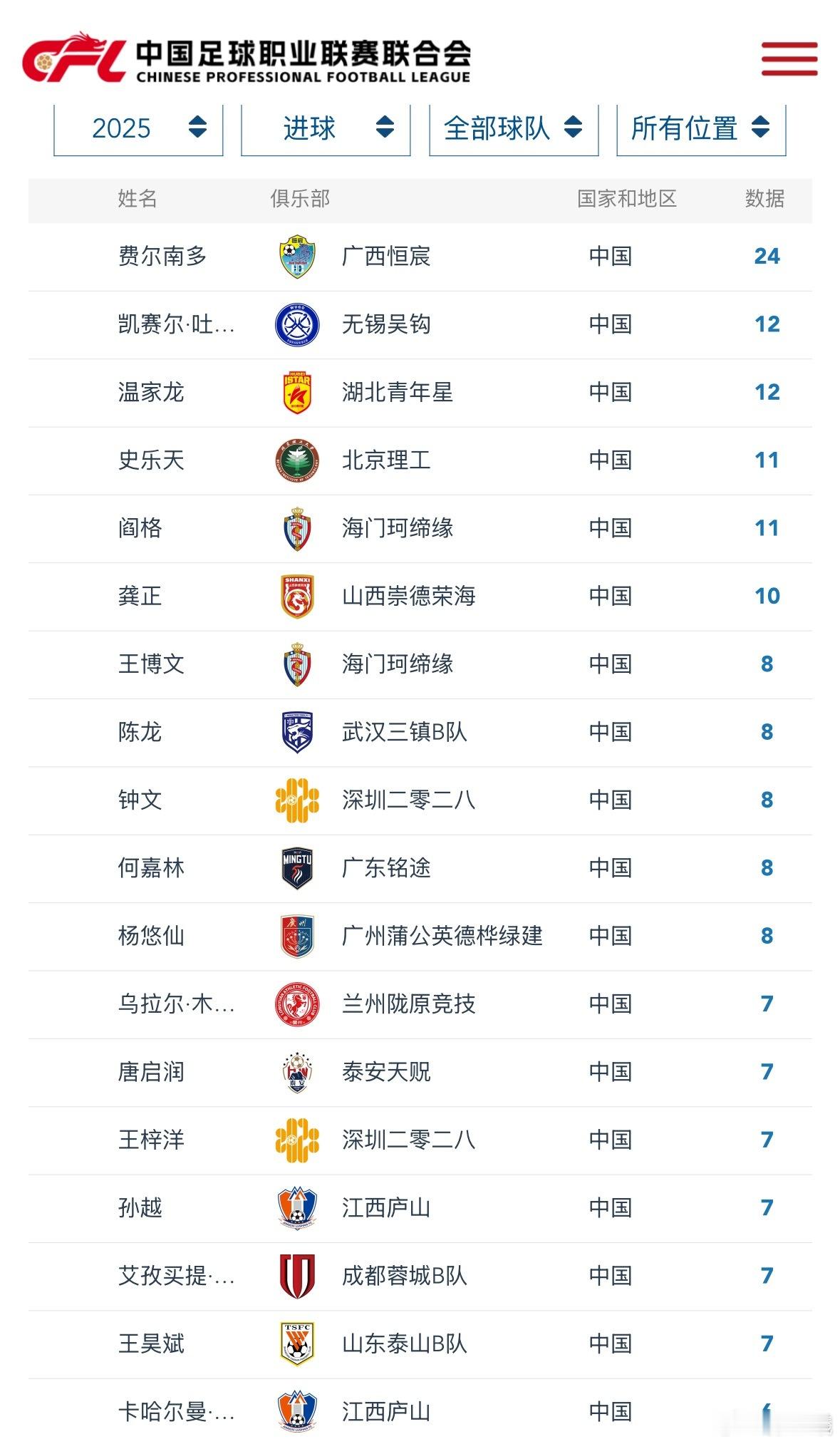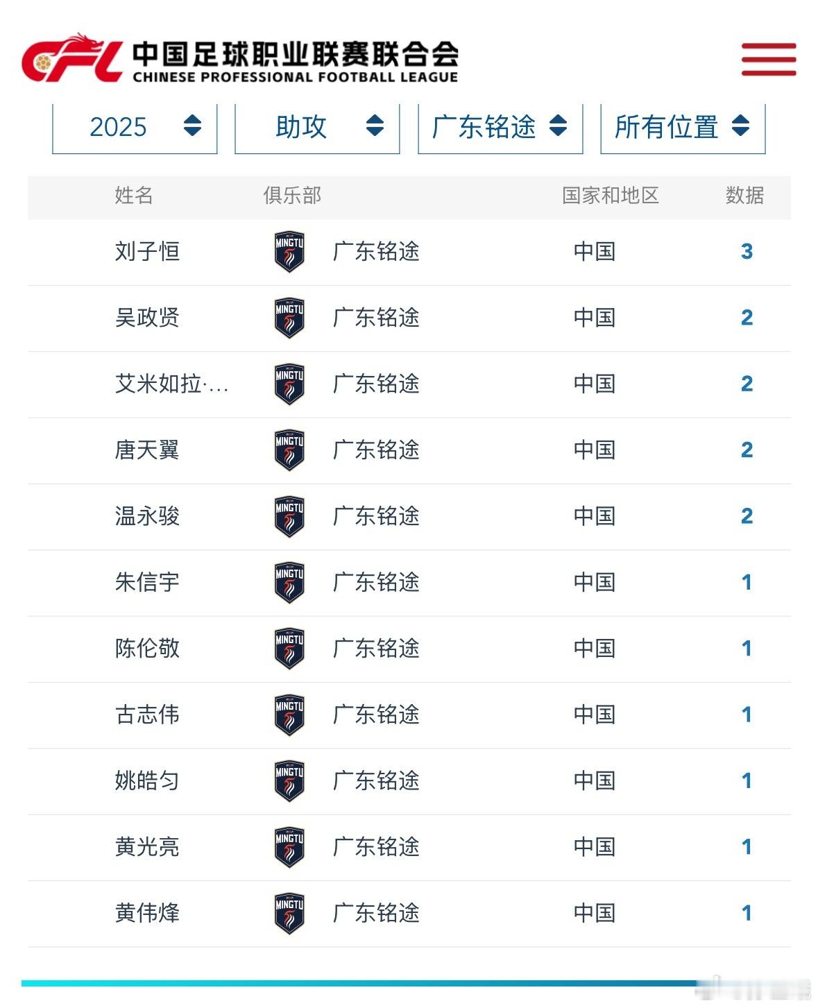 2025广东铭途第一个职业赛季,队内最佳射手何嘉林8球(24球联赛最佳),队内助