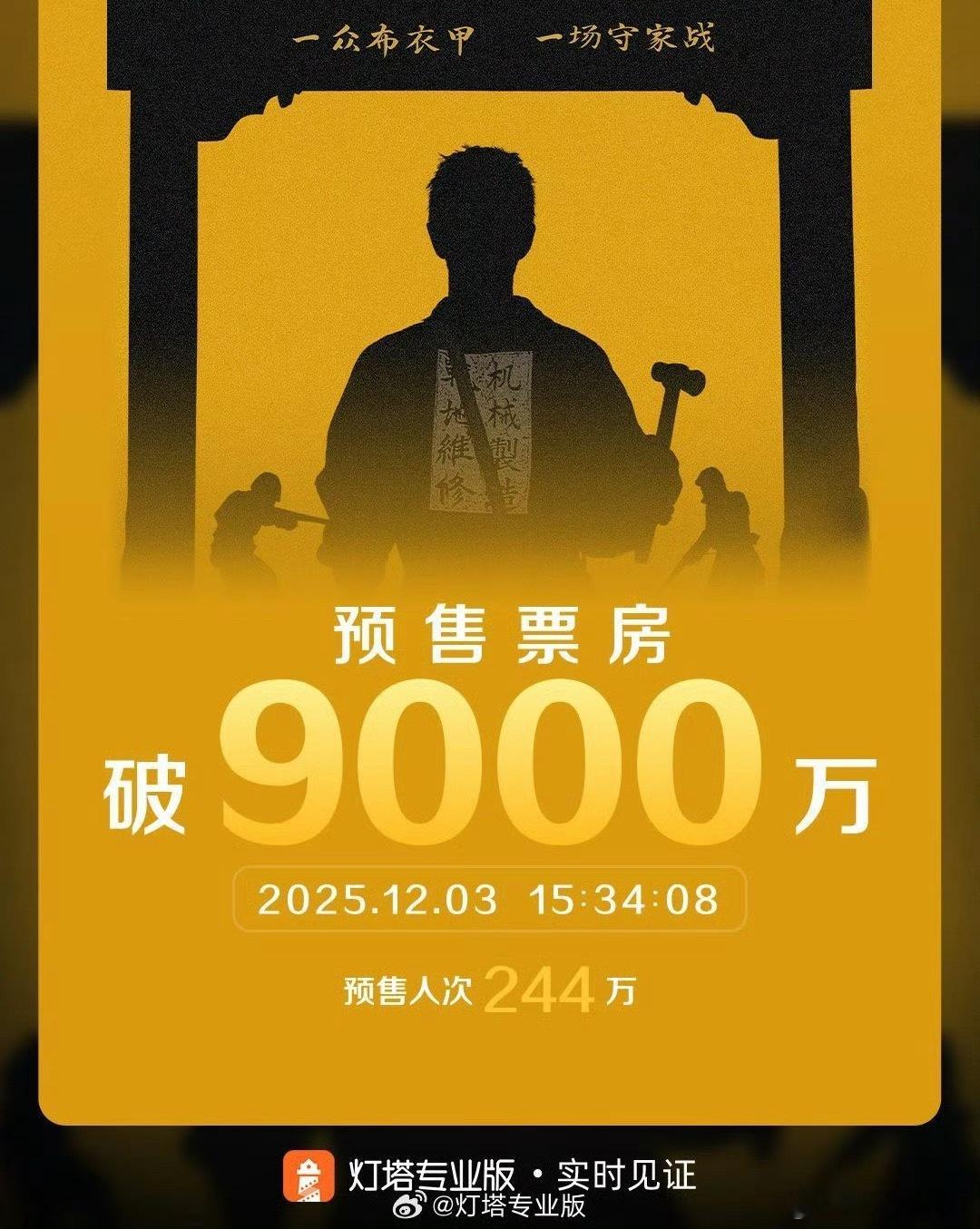 得闲谨制预售票房破9000万电影《得闲谨制》零预热 空降定档 仅5天,在大片夹击下预售直接刷新国产战争片纪录,已破9000万+,直奔1亿👏!孔笙+兰晓龙黄金班底坐镇,肖战领衔全员实力派,长预告一释出,质感与剧情双在线引爆全网好评!戈止镇从无超级英雄,钳工莫得闲带着乡亲们,以榫卯为刃、农具为器,把对家园 家人的牵挂,全化作抗日的决绝底气——从最初的恐惧到后来的义无反顾,这才是最戳心的平凡小人物家国情怀,真实又滚烫!电影得闲谨制郑重声明肖战莫得闲父子对手戏