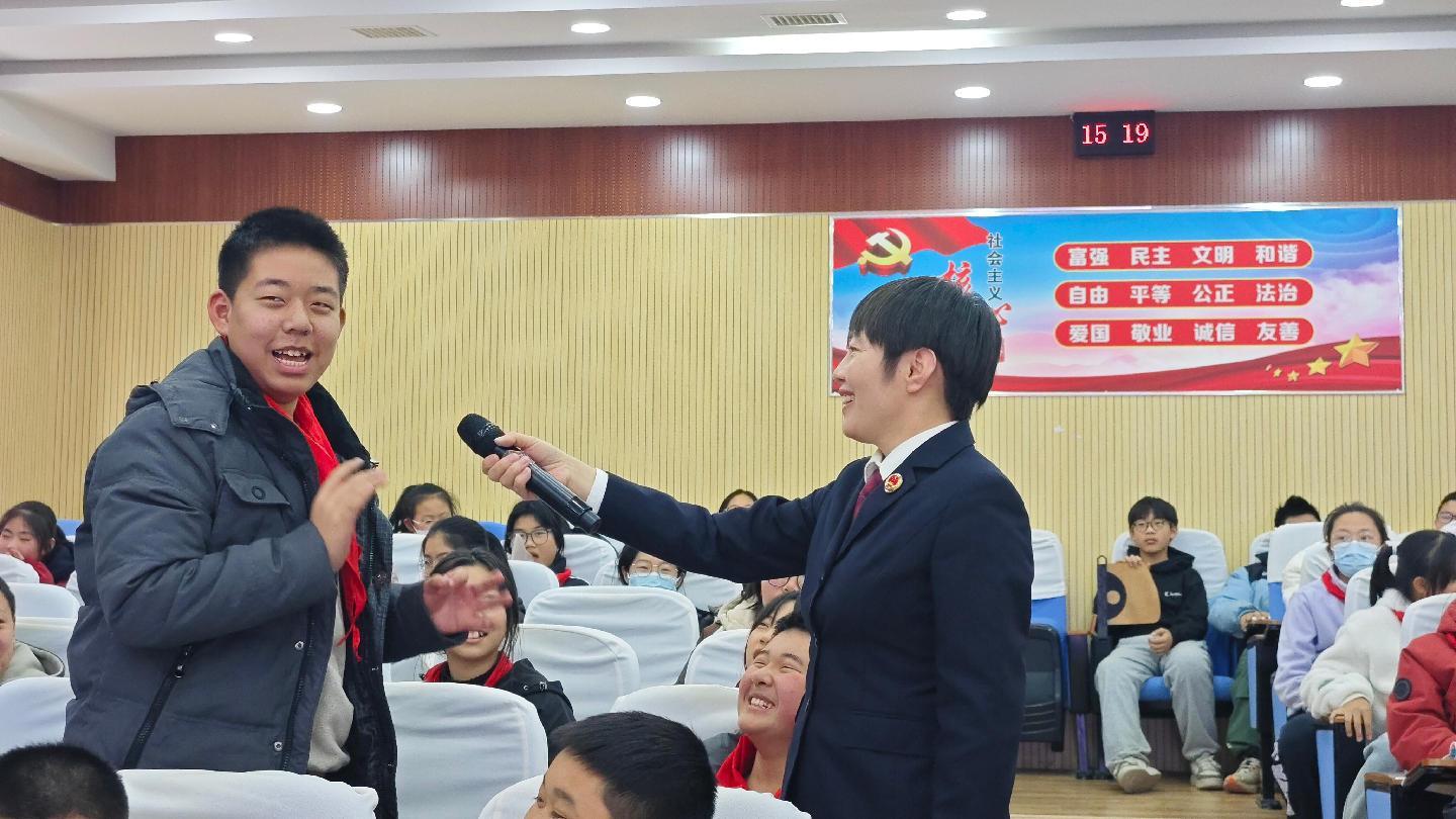 任兆锦通过一个个贴近校园生活的案例和提问,将宪法条文与学生的日常生活紧密相连,激发同学们积极思考。她还结合“骊雨新荷”工作室办理的真实案例,深入浅出地讲解了网络安全、防范欺凌、自我保护等与未成年人密切相关的法律知识,强调宪法是保护青少年健康成长最坚实的盾牌。