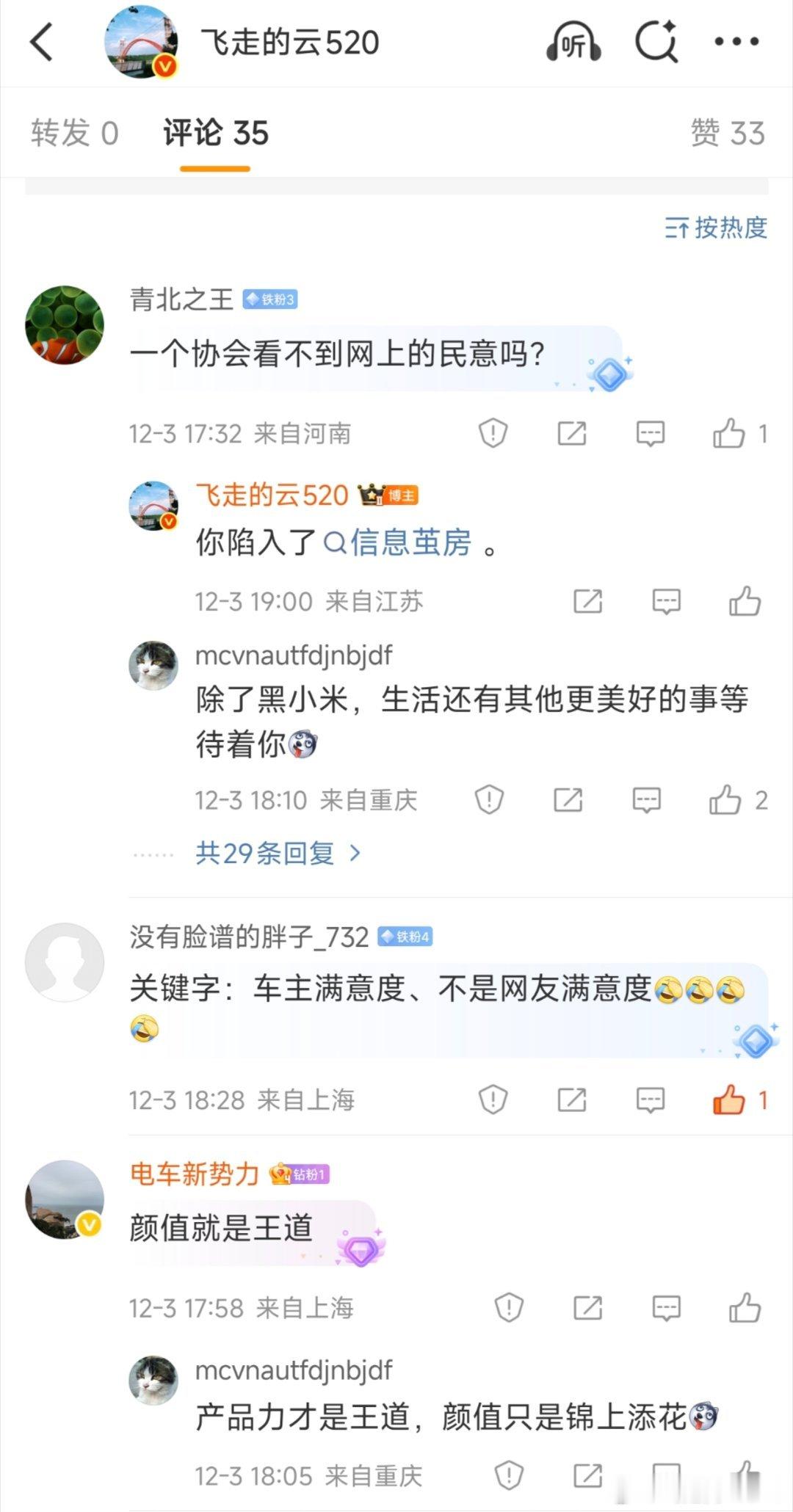 这位网友天天在我评论区怼小米,但他根本不是小米汽车用户网友评论:中质协调查的是车主满意度,不是网友满意度