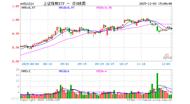 12月3日,上证指数ETF(510210)跌0.41%,成交额2.46亿元。当日份额减少3000.00万份,最新份额为61.97亿份,近20个交易日份额增加11.94亿份。最新资产净值计算值为59.93亿元。