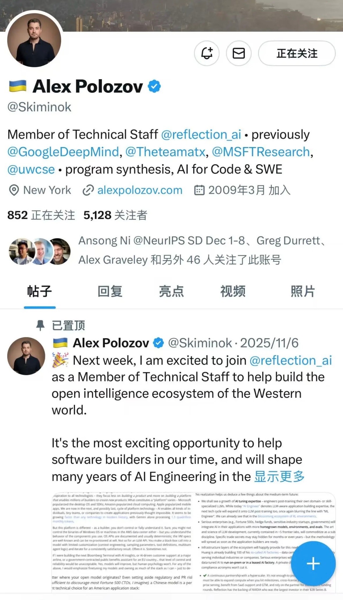Google高级AI专家Alex Polozov:我正在飞往圣地亚哥的航班上,大约30%的乘客都在盯着同一个PDF文件,也就是deepseek新发的论文。
